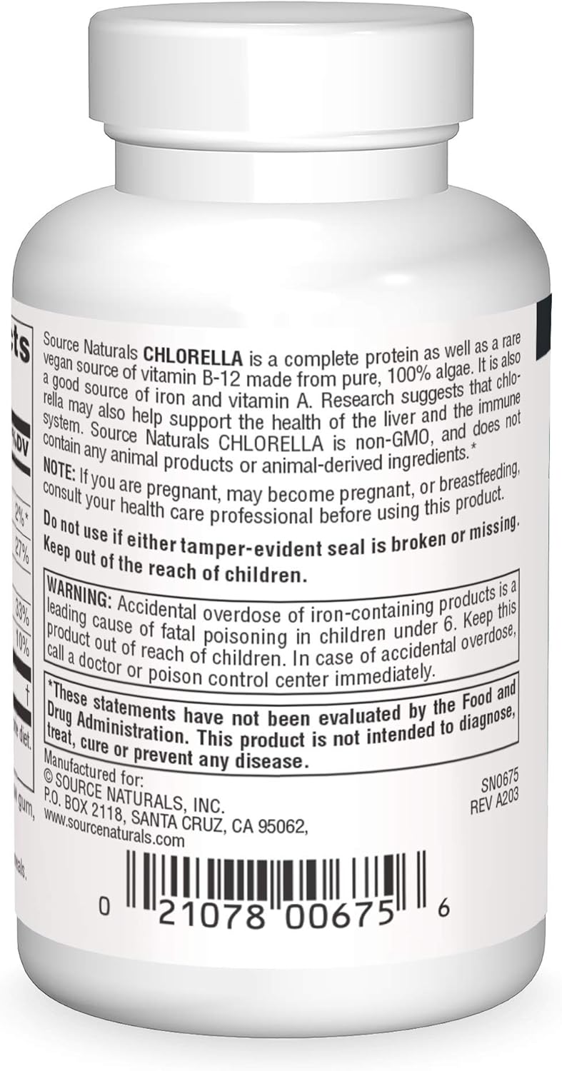 Source Naturals Chlorella 500 mg Green Superfood, Plant-Based B12-100 Tablets