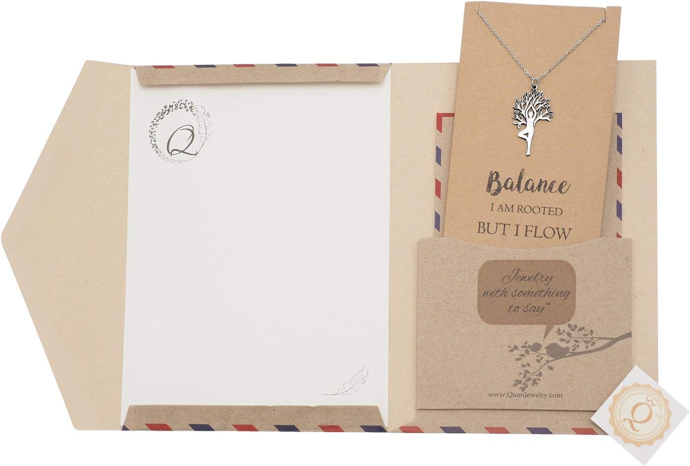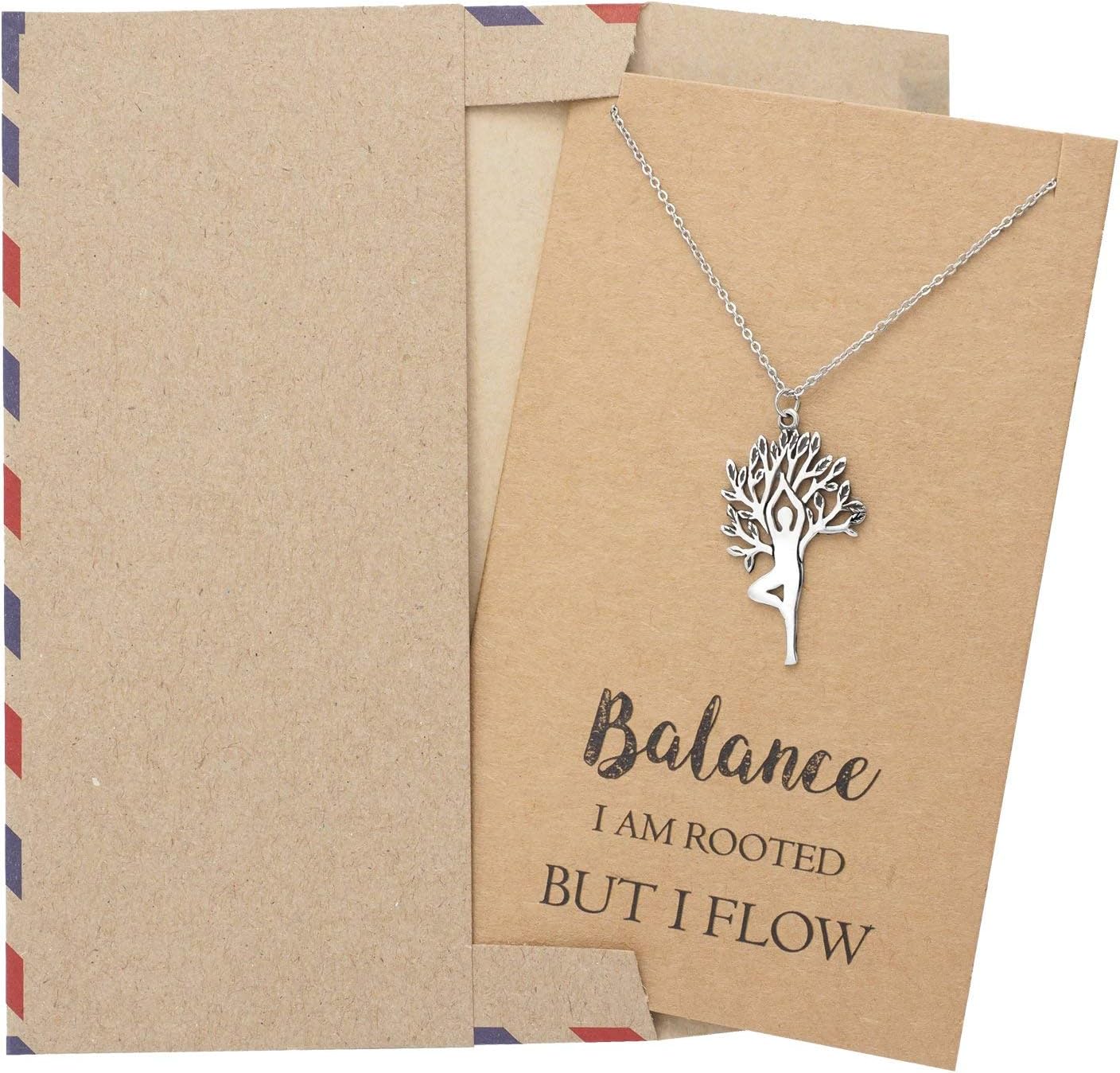 Quan Jewelry Yoga Vriksasana Asana Tree Pose Meditation Pendant Necklace, Greeting Card, Inspirational Quote Card