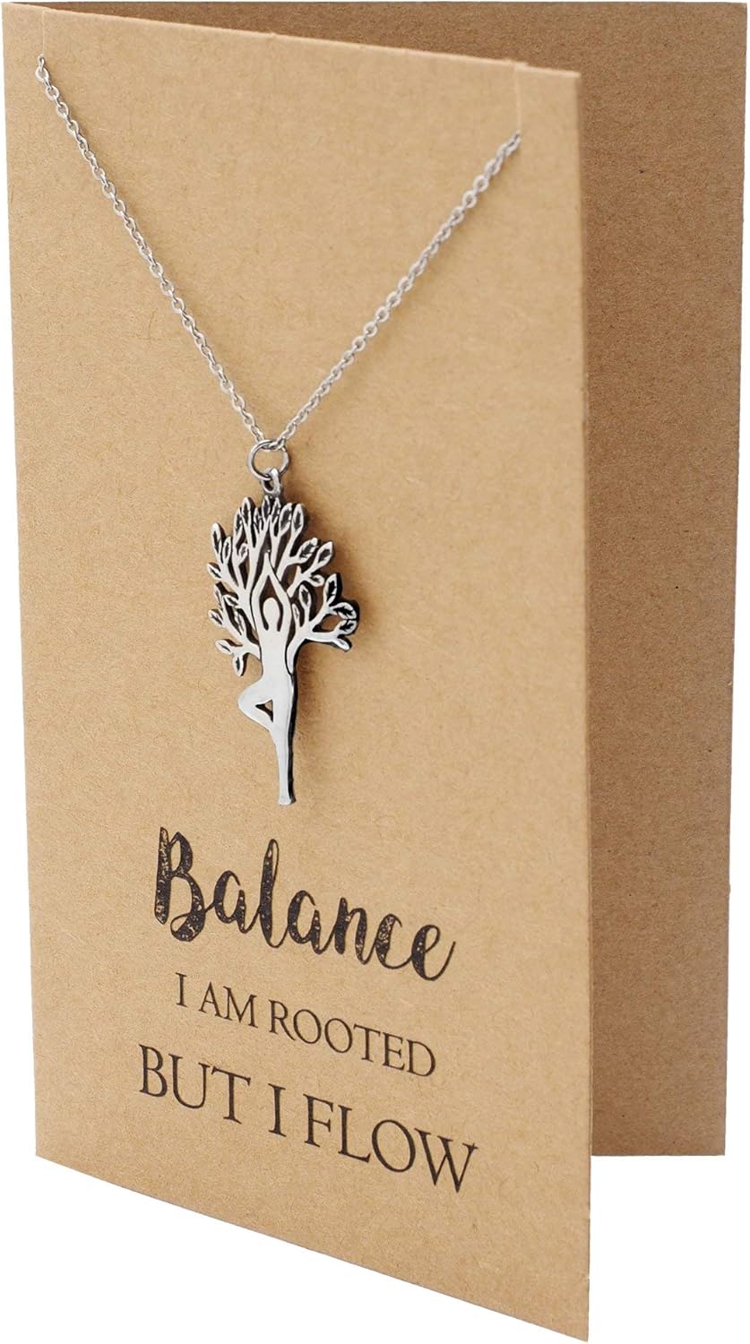 quan jewelry Yoga Vriksasana Asana Tree Pose Meditation Pendant Necklace, Yoga Accessories, Birthday Greeting Card, Inspirational Quote Card