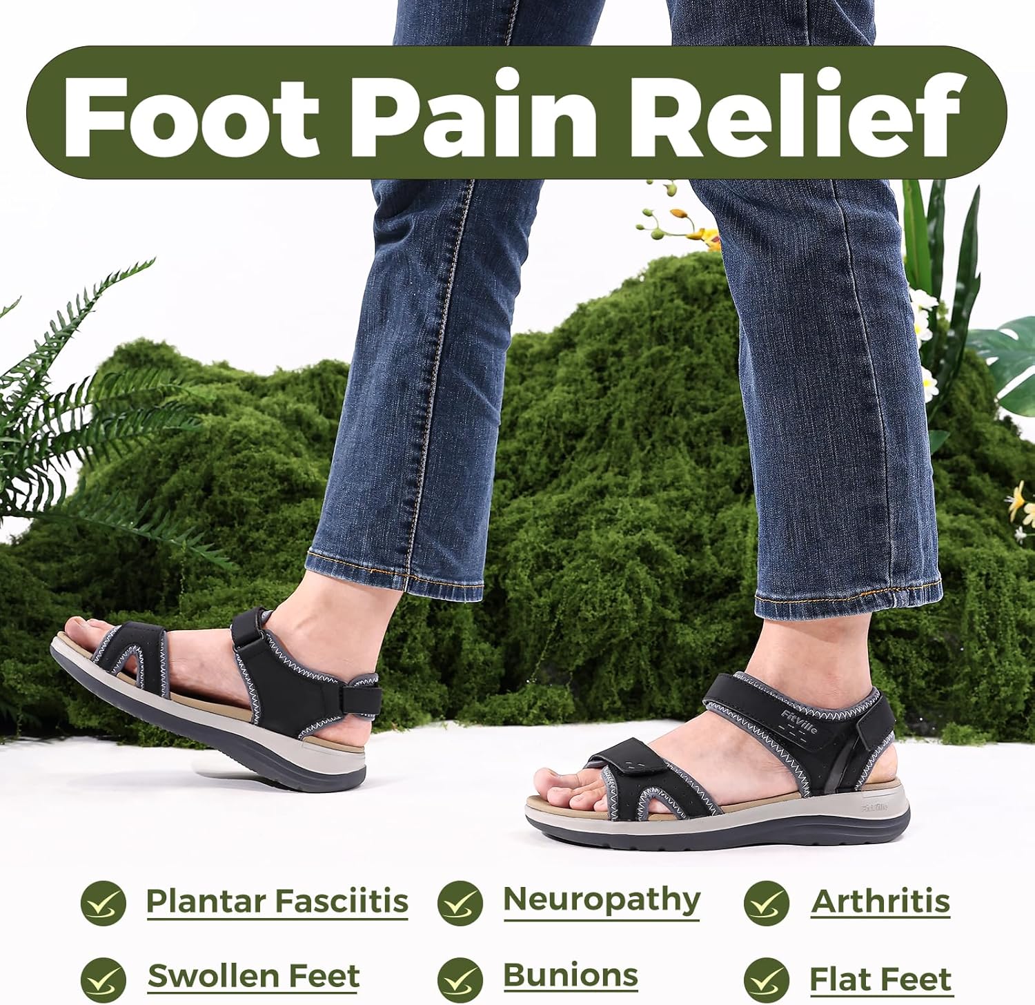 FitVille Women’s Orthopedic Wide Sandals Strappy Arch Support Flat Sandals for Plantar Fasciitis & Swollen Feet | Adjustable Ankle Strap