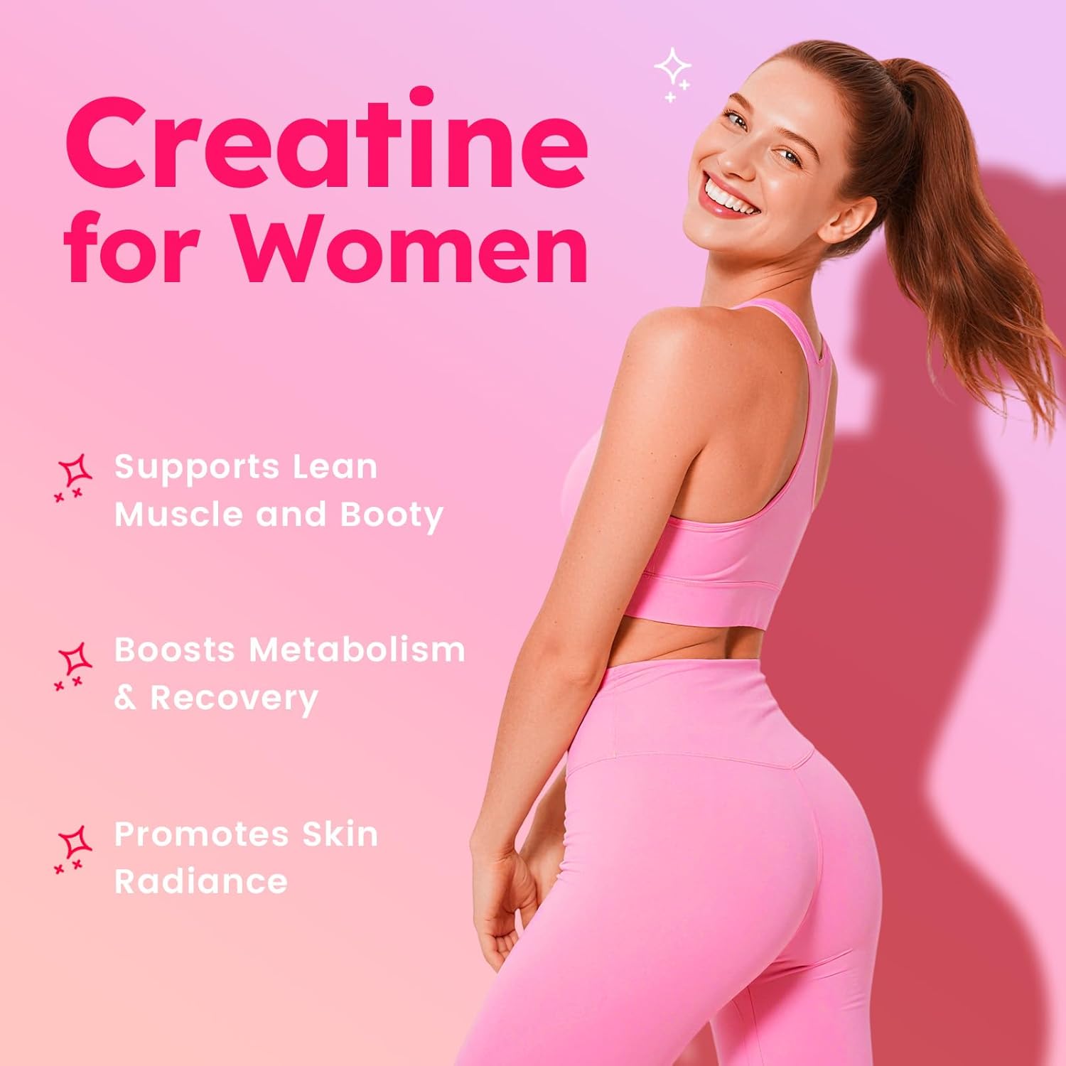 Benefits of Creatine for Women: Research shows that creatine can help women enhance workout performance, strength & endurance, support glute and lean muscle growth. Per serving, our gummies deliver the optimal daily amount of creatine for women, combined with BCAAs to promote faster recovery and reduce muscle soreness. Creatine may also support energy production, mental focus, and aging healt—while helping to support hormonal balance and overall women’s wellness at every stage of life