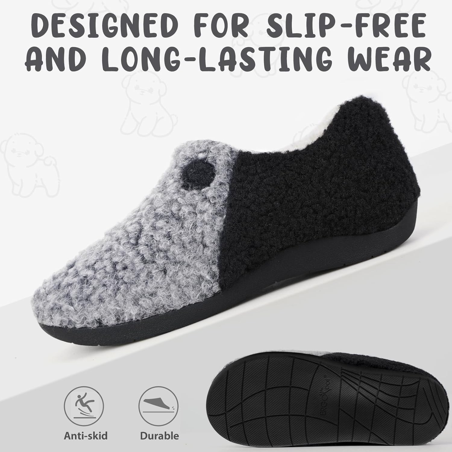 ERGOfoot Orthopedic Slippers with Arch Support for Women and Men – Fuzzy House Shoes for Plantar Fasciitis Relief, Closed Back, Soft Plush Sherpa Fleece Lining Moccasin