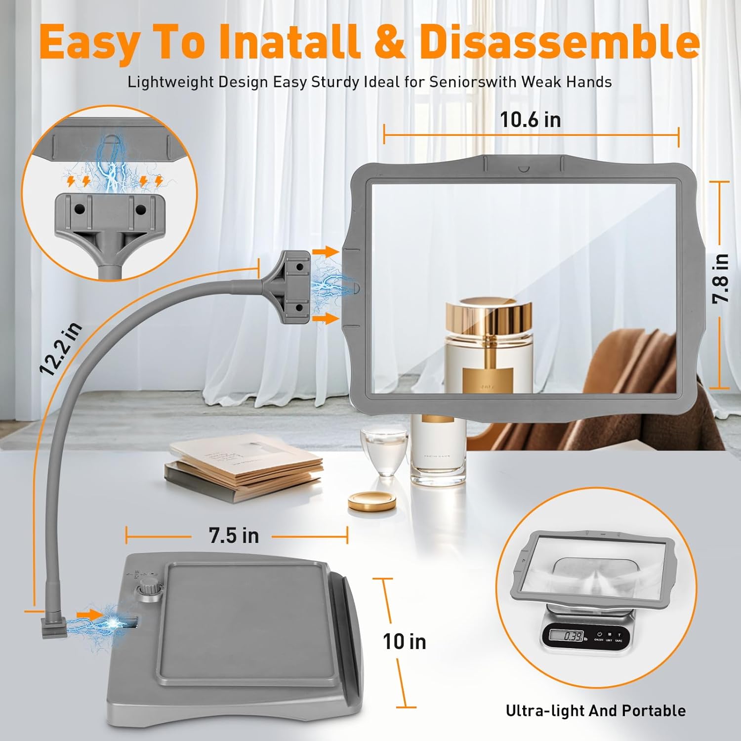 Flexible and Stable Gooseneck: This large magnifying glass with light hands-free has a 12.2-inch flexible gooseneck for easy adjustments. You can tilt the lens to the perfect angle for optimal viewing and magnification. Once positioned, it stays securely in place, offering a magnifier with light hands free experience that significantly boosts your work efficiency.