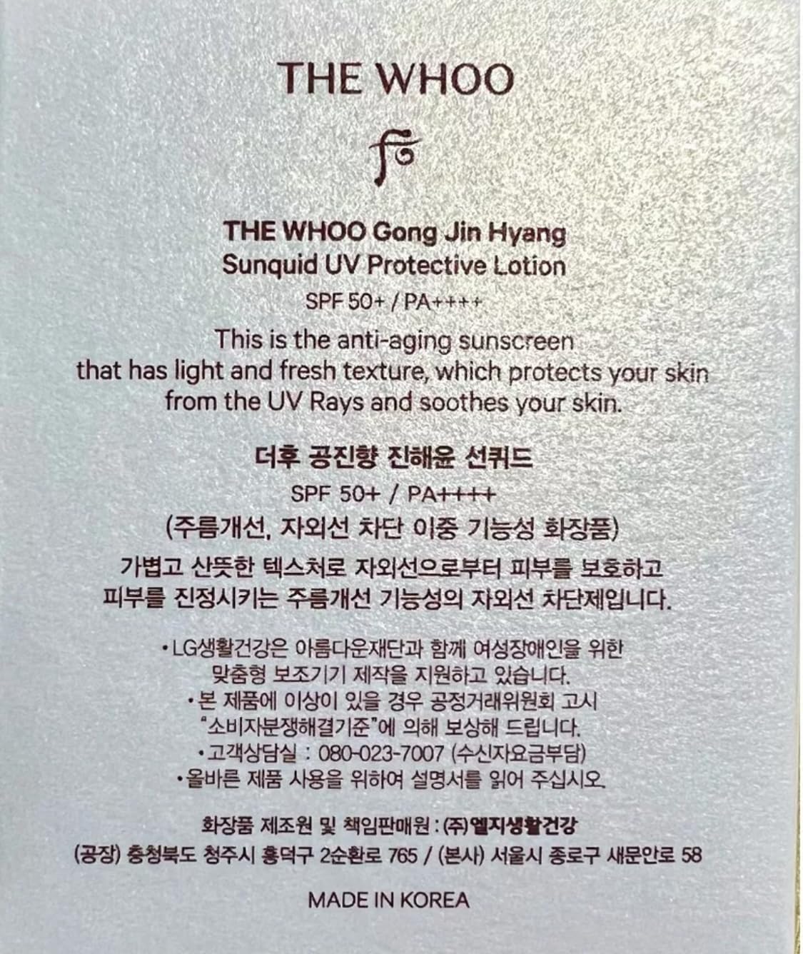 123 UBuy Shop_THE WHOO SUNQUID UV Protective Lotion SPF 50+/PA++++ Special Set 50ml+ Travel Kit 4ea x 13ml. Cooling-Anti-Aging-Moisturizing formula. Made in Korea