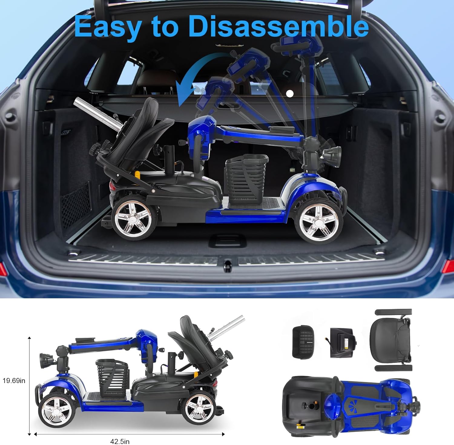 [Hassle-Free Charging with Detachable Battery] Eldryvon folding mobility scooter is designed for ultimate convenience. The 15Ah battery is detachable and comes with power-off protection for added safety and convenience. Charge it easily and keep your folding mobility scooter ready for the next adventure. An excellent choice of electric mobility scooters for adults and seniors.
