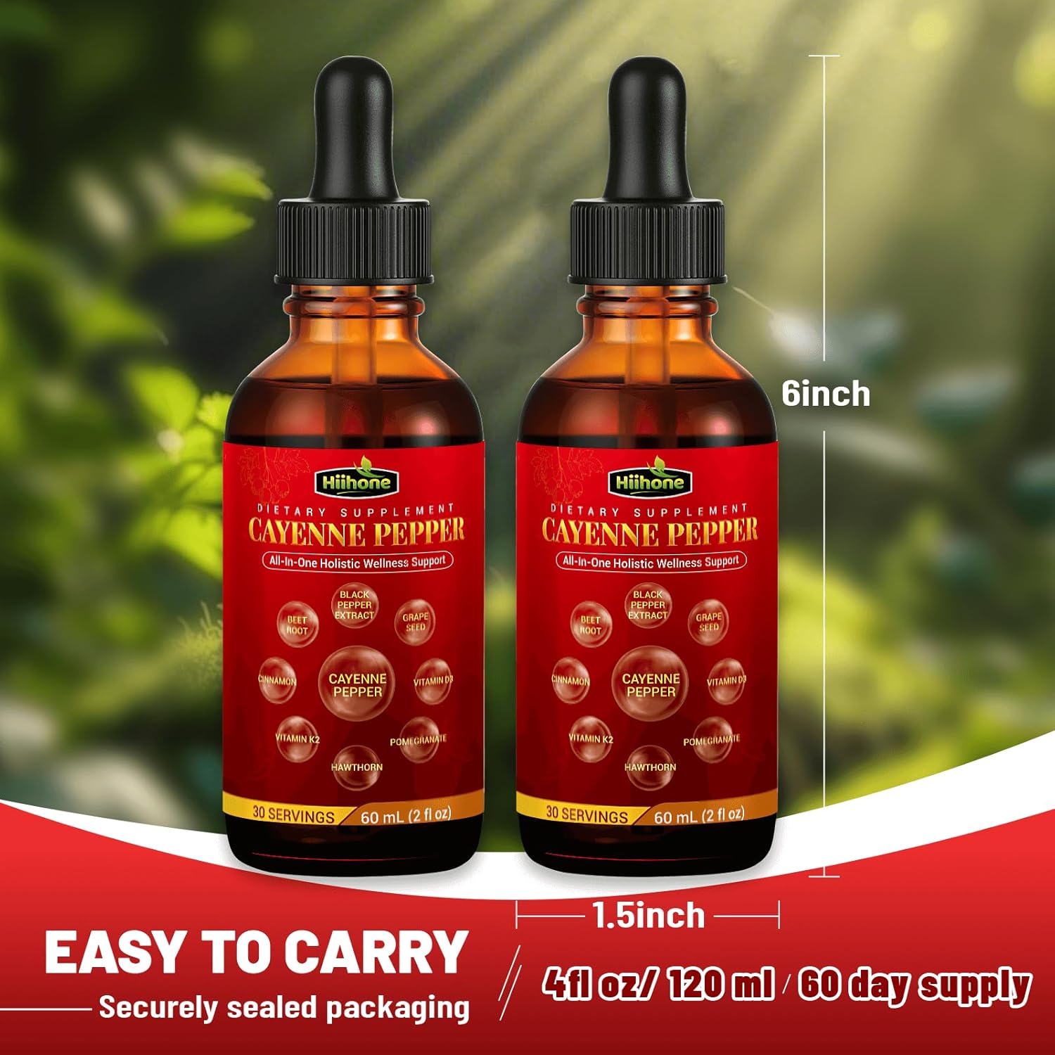 (2 Packs) 10-in-1 Cayenne Pepper Drops – Herbal Supplement with Hawthorn, Beet Root & Cinnamom – Supports Healthy Digestion & Immune – 4 FL Oz
