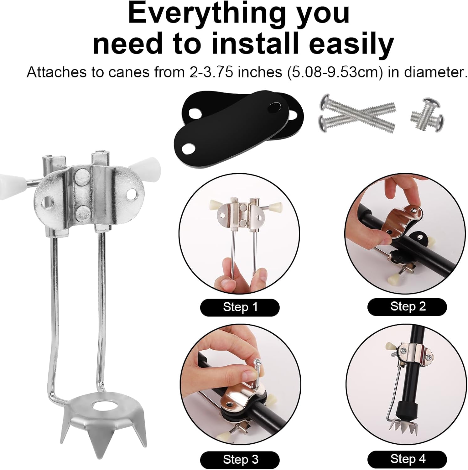 Easy to Use: There are 1 pair of long screws and 1 pair of short screws, which can be used with crutches of different diameters ranging from 2 inches to 3.75 inches(5.08-9.53cm). Fits standard and folding canes, forearm crutches, armpit crutches, walkers and more.
