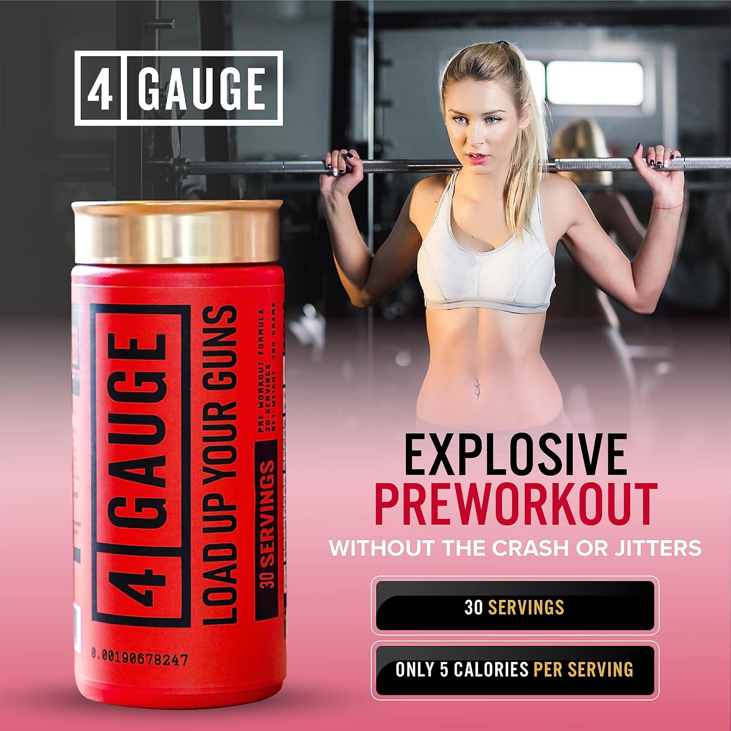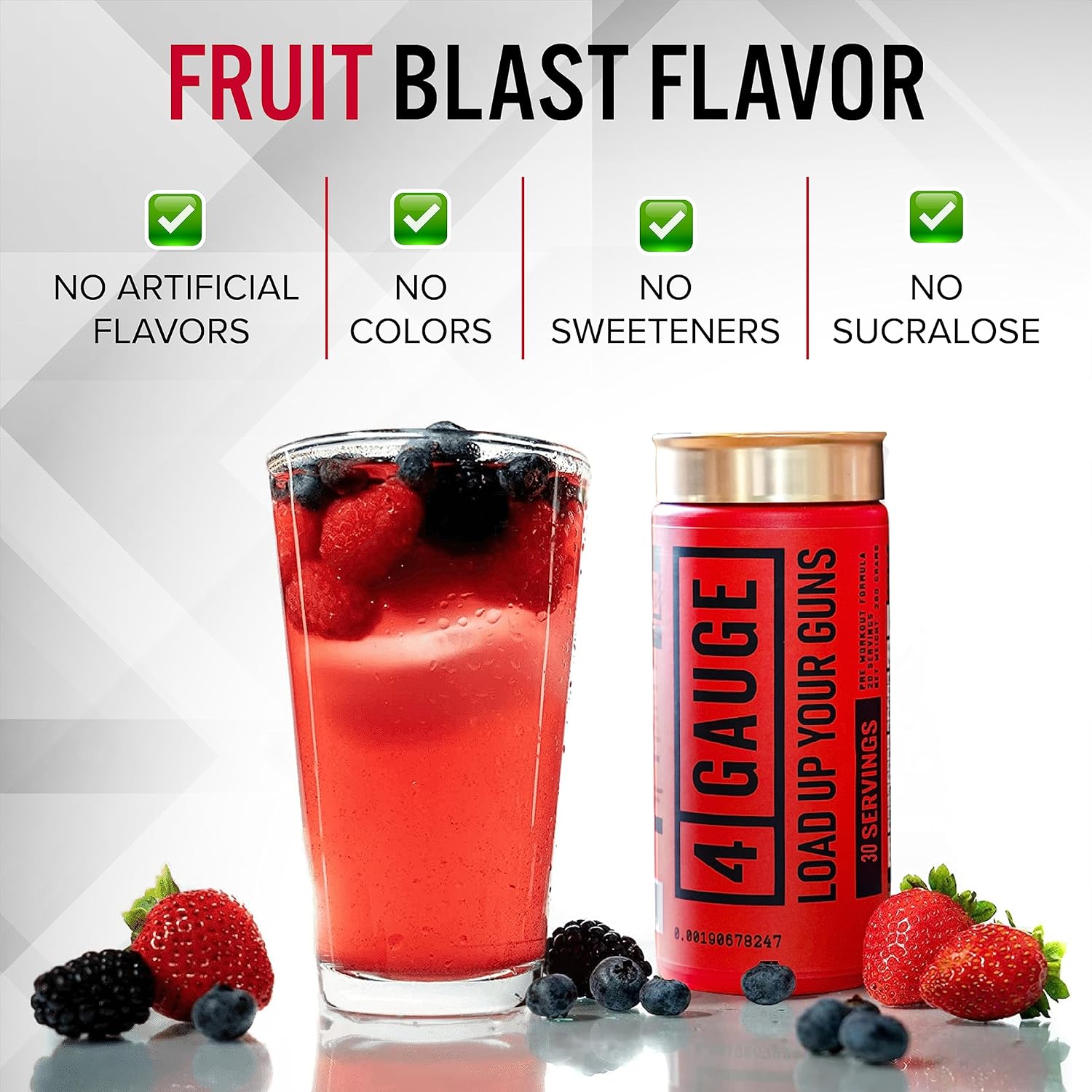 4 Gauge Explosive Preworkout Without The Jitters | 30 Servings | Nitric Oxide Booster | L-Citrullline, L-Carnitine, Creatine | No Artificial Ingredients (Fruit Blast)