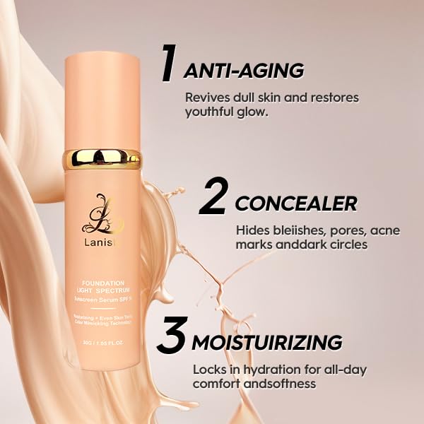 4-in-1 Foundation with SPF 50, Anti-Aging Concealer, Color Changing, Moisturizing Serum, Natural Matte Finish, 1.02 FL OZ