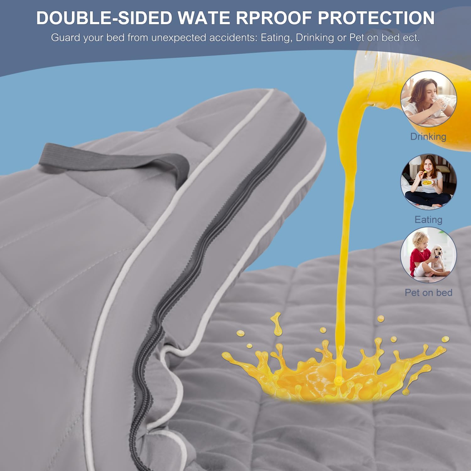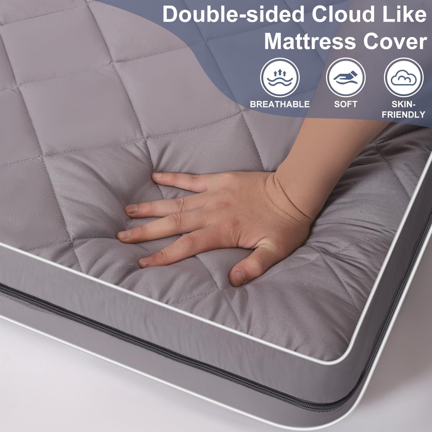 【Waterproof Protection & Easy Portability】Featuring a waterproof, breathable middle layer, thick foam, and a double-side plush pillow-top mattress cover, this mattress topper delivers ultimate comfort—even on wet ground,stones, tree roots, or other uneven outdoor surfaces. It rolls up neatly with storage straps, making it ideal for camping or truck adventures. An extra elastic band ensures a snug fit on mattresses up to 18 inches deep, keeping it securely in place all night