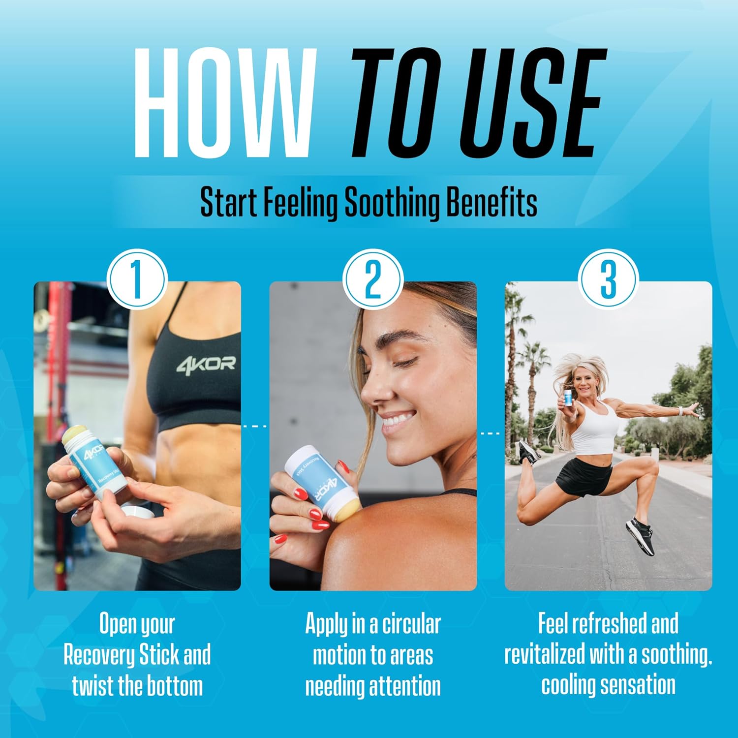 Fast-Absorbing & Mess-Free Application: The 4KOR Recovery Stick glides on smoothly with a light and clean application. Its twist-up design allows for targeted application, making it perfect for post-workout use, training, or daily activities.