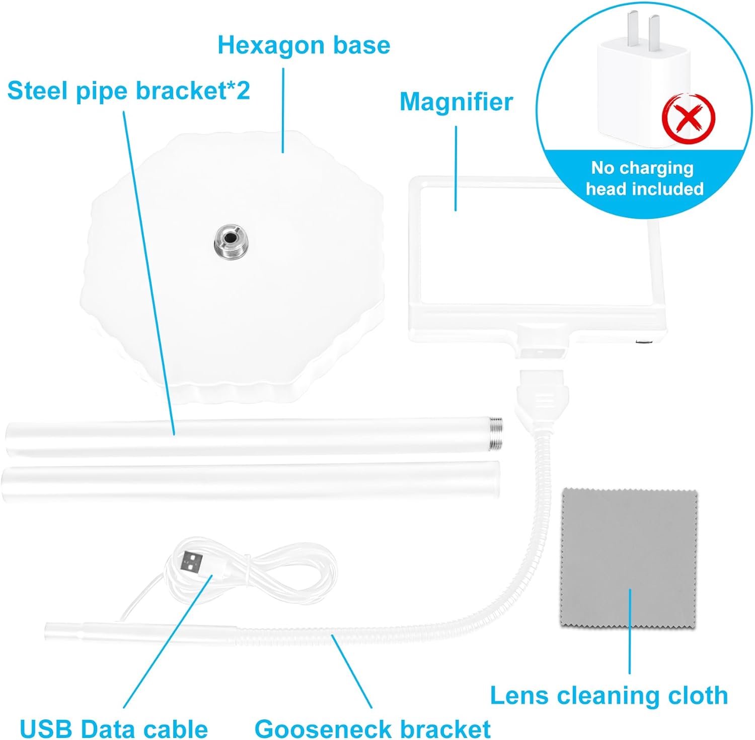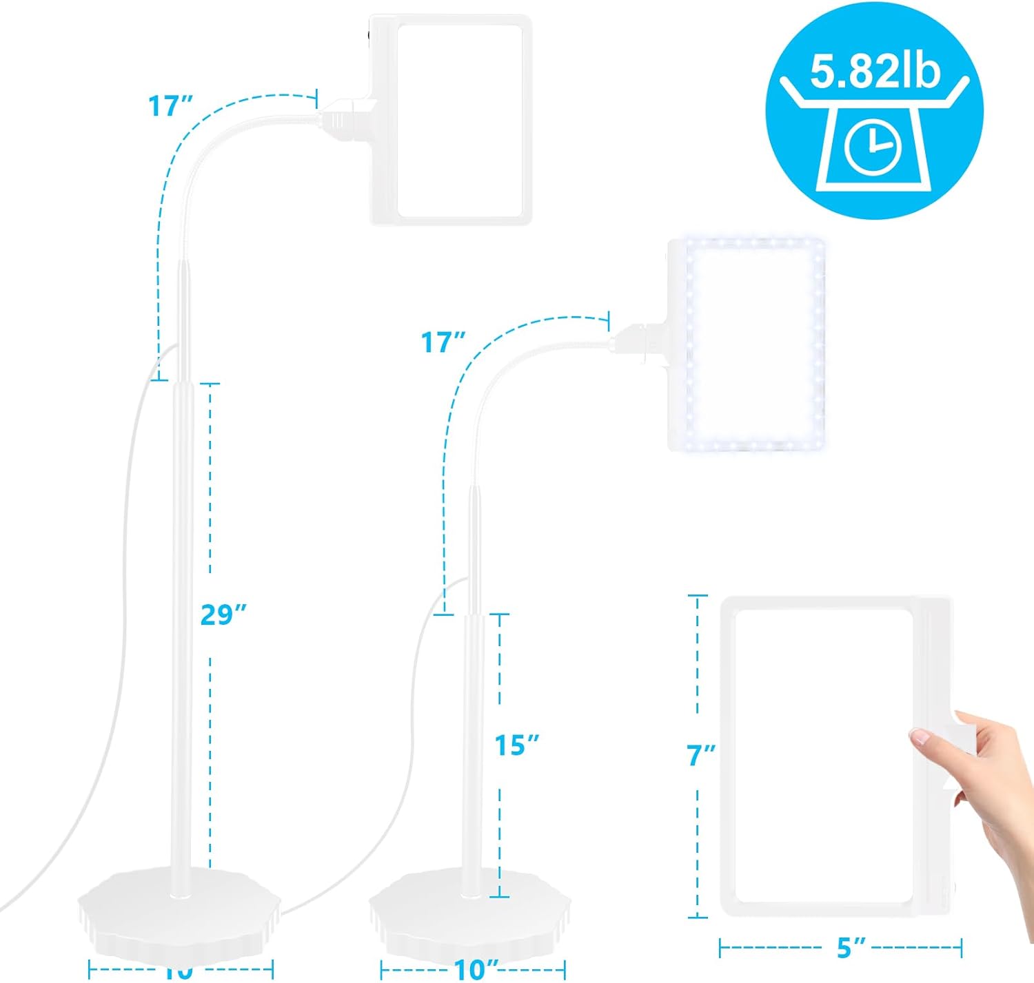 The 17-inch high-quality aluminum alloy gooseneck can rotate 360°, excellent stability, freeing your hands