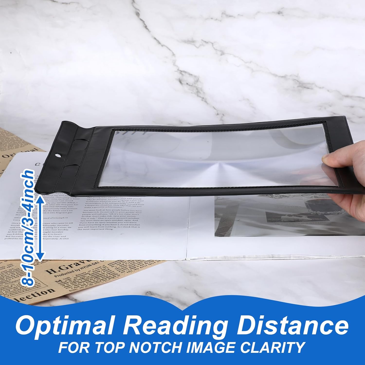 Wide Field of View, Enhanced Clarity: The large 12″ x 7.6″ magnifying glass provides a wide field of view, perfect for reading or observing large areas without having to constantly adjust the lens. Its effective magnification area is 8.6″ x 6.1″, providing a seamless experience, and improving convenience and user satisfaction during extended use.