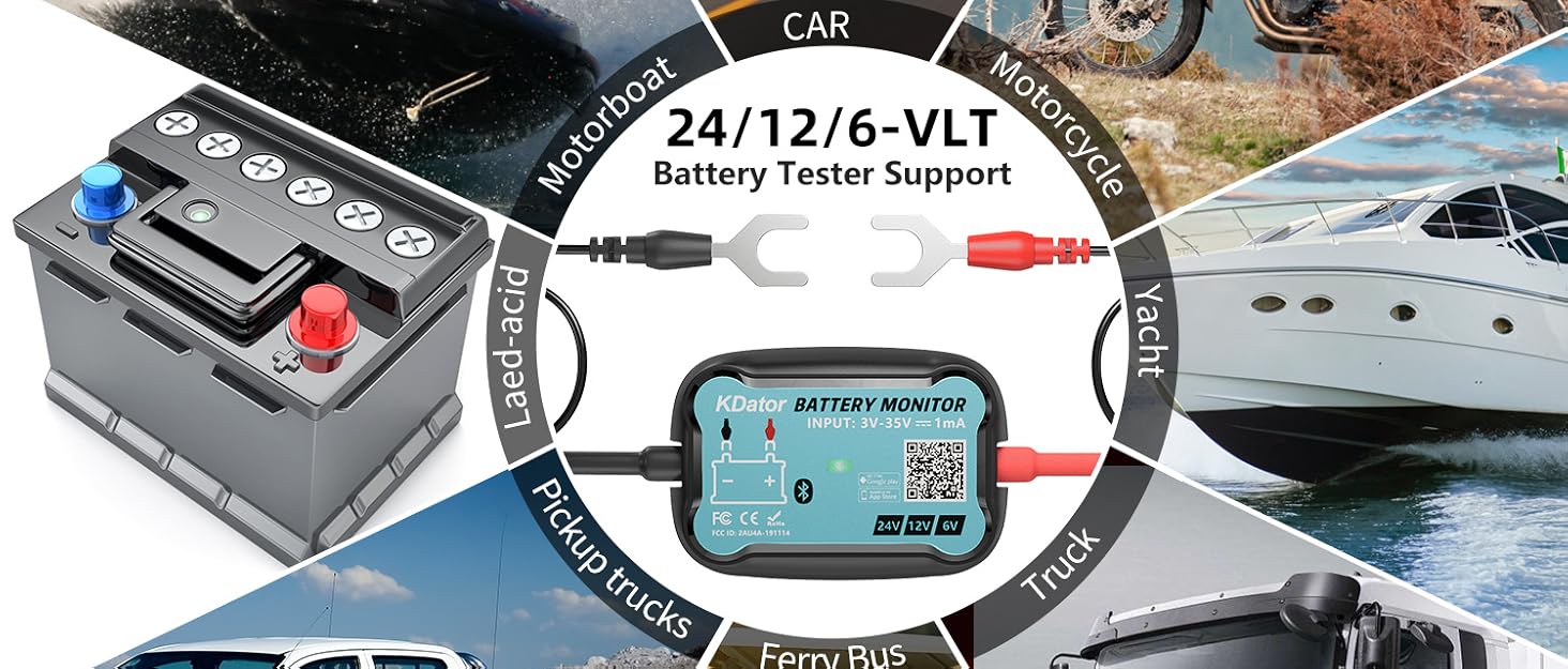 Supports Battery Type: The BM7 Battery Monitor is compatible with all 6V/12V/24V 100-2000CCA lead-acid and lithium batteries, including LiFePO4 Lithium , Flooded, AGM, GEL and EFB batteries for Cars, Vans, Trucks, Hybrid vehicles, Off-road vehicles, SUVs, Trailers, Travels, Forklifts, Marine ,Boats, RVs, Pickups, Motorcycles, Solar power systems, Energy storage batteries. BM7 can meet the needs of different types of batteries.