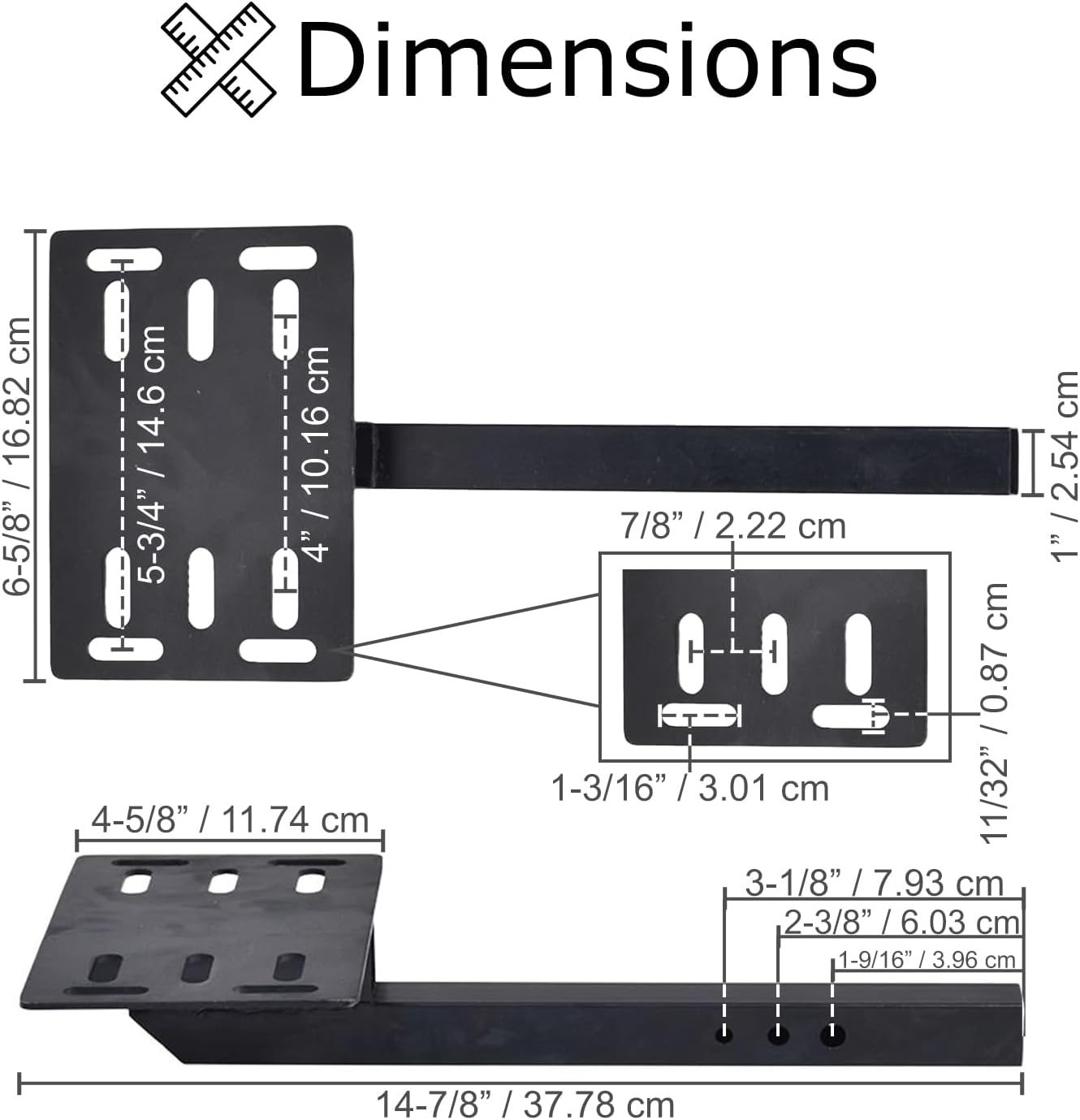 Hitch Install Hardware Included – Comes with three 1-1/4″ pins (1/4″, 5/16″, and 3/8″), to attach to your 1″ hitch. 6-3/4″ x 4-3/4″ milled steel platform with 10 elongated holes for use with pins