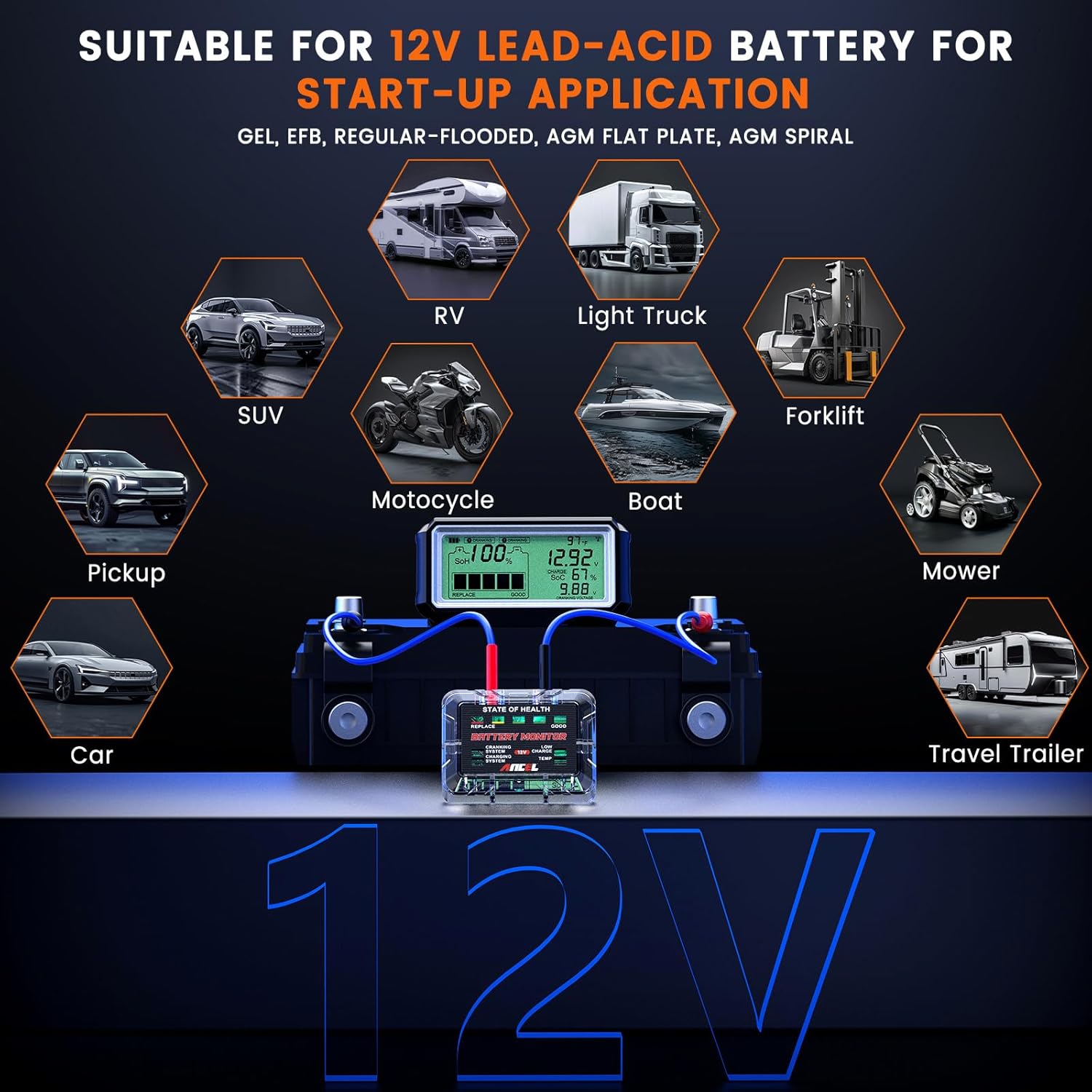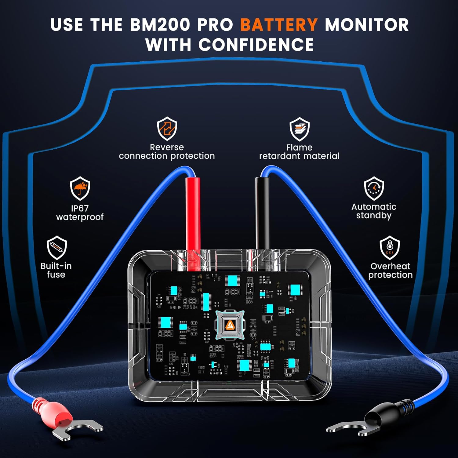 ANCEL BM200 PRO 12V Battery Monitor, 433MHZ Wireless Transmission Battery Monitor with Cranking & Charging Test, Voltage & Temperature Monitoring, Alarm Function for Car, Motocycle, RV, Truck & Boat