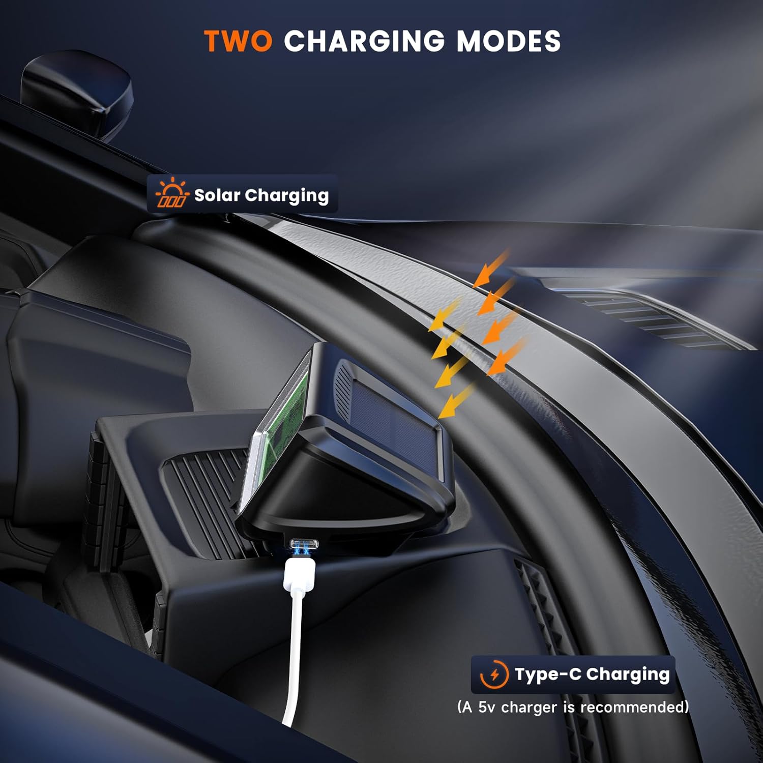 ✅Energy Saving And Environmental Protection: The car battery tester display screen adopts two modes of power supply:Type-C fast charging and solar panel. The solar panel powers and charges the device so that it does not need to be charged as often.The use of solar cells are more environmentally friendly, energy efficient, and can work independently of the grid.This is very useful for some remote areas or wilderness adventure and other scenarios.High economy can reduce energy costs.