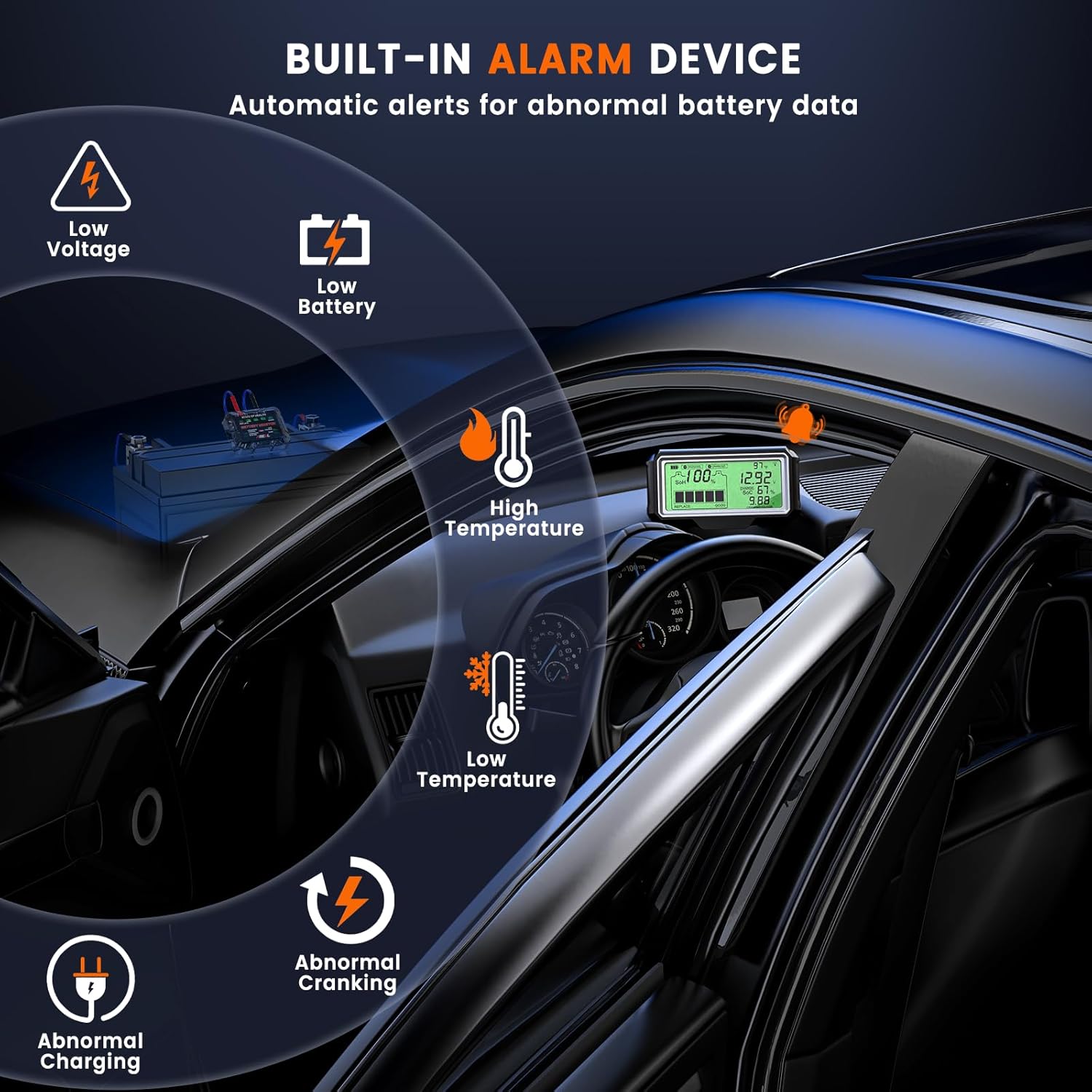 ANCEL BM200 PRO 12V Battery Monitor, 433MHZ Wireless Transmission Battery Monitor with Cranking & Charging Test, Voltage & Temperature Monitoring, Alarm Function for Car, Motocycle, RV, Truck & Boat