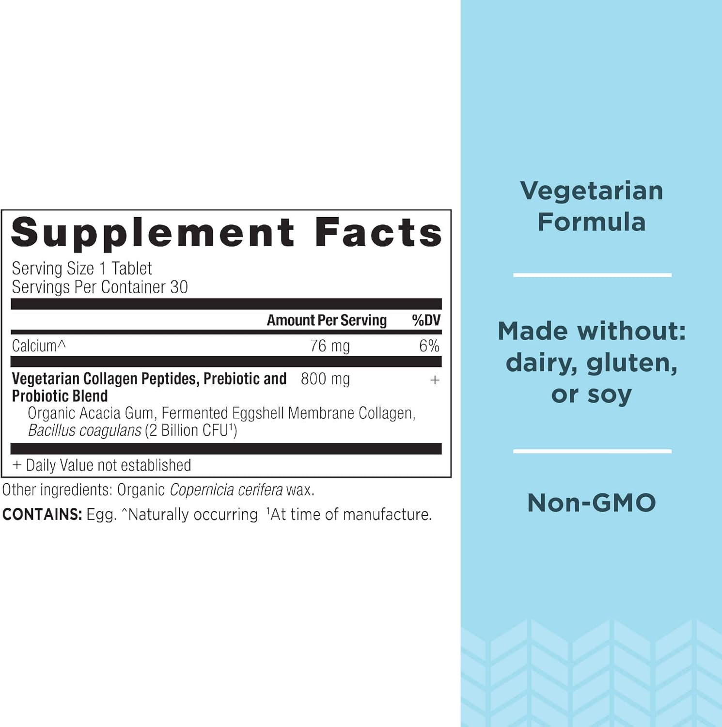 Ancient Nutrition Vegetarian Collagen Peptides, Collagen Peptides Tablets, Collagen with Prebiotics and Probiotics, Supports Healthy Skin, Hair, Joints, Digestion, Vegetarian Capsules, 30 Count