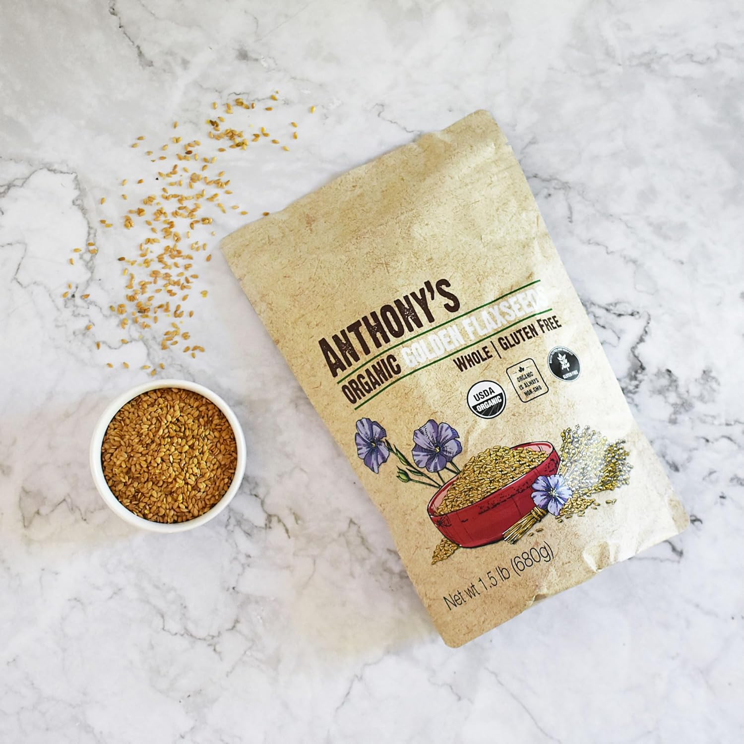 Anthony’s Organic Whole Golden Flaxseeds, 1.5 lb, Gluten Free, Non-GMO, Vegan