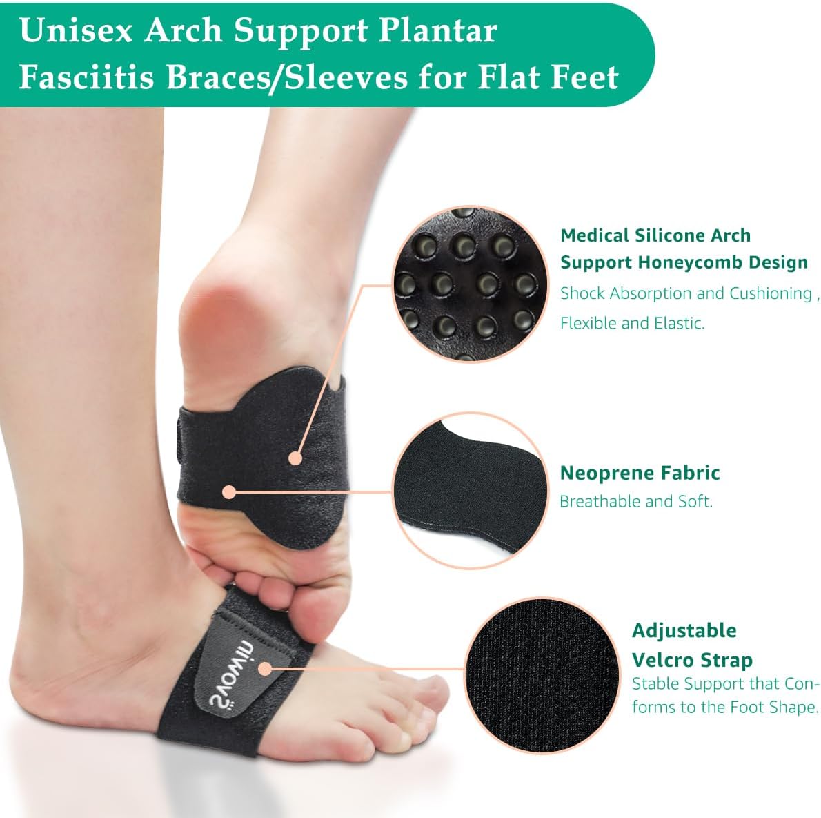 Svowin Arch Support Compression Sleeves for Flat Feet, Adjustable Velcro Plantar Fasciitis Braces for Fallen Arches, Unisex Orthotic Arch Support Wrap for High Arch, Feet Pain Relief(One Size Fits All)