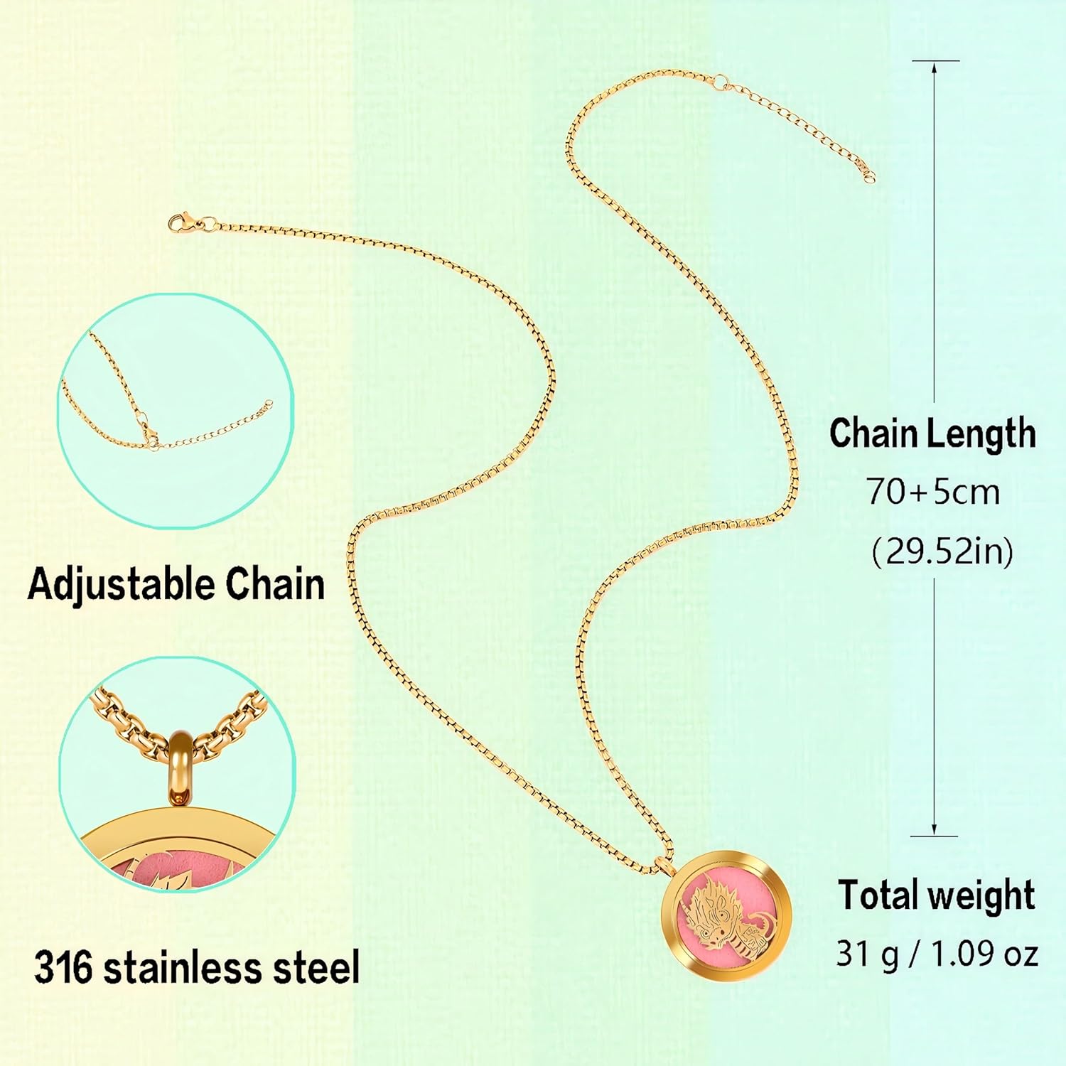Aromatherapy Diffuser Necklace-Dinosaur Essential Oil Necklace,Aromatherapy Diffuser Pendant for Men and Women,Portable,Suitable for Yoga,Meditation,Travel,Stress Relief Gift(Gold 30mm)