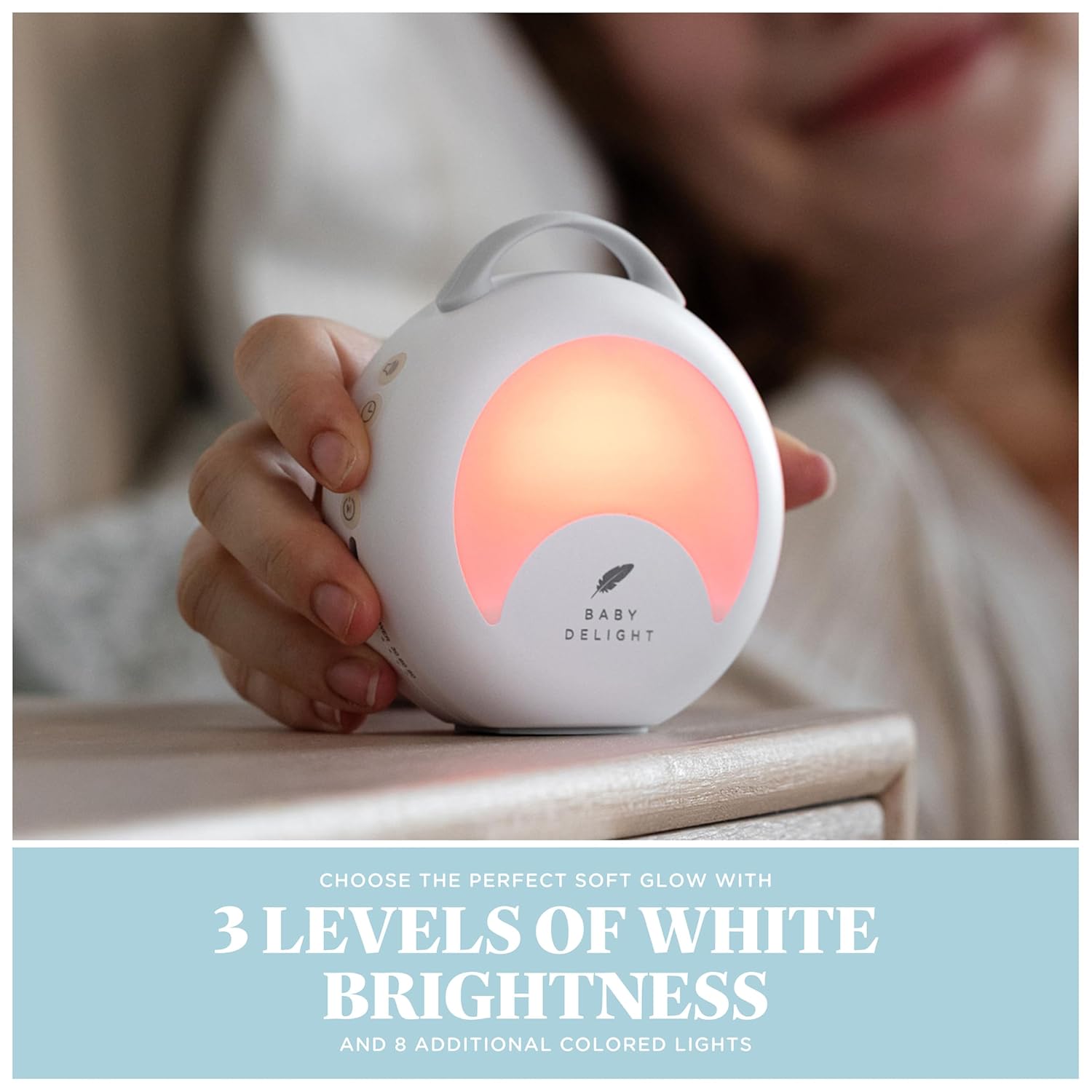 Baby Delight Dewdrop Sound Machine | Portable Baby Noise Machine & Travel Nightlight | 30 Sleep Sounds | Lullabies, Nature Sounds, White Noise & More | 8 Light Colors | Voice Recorder | Rechargeable