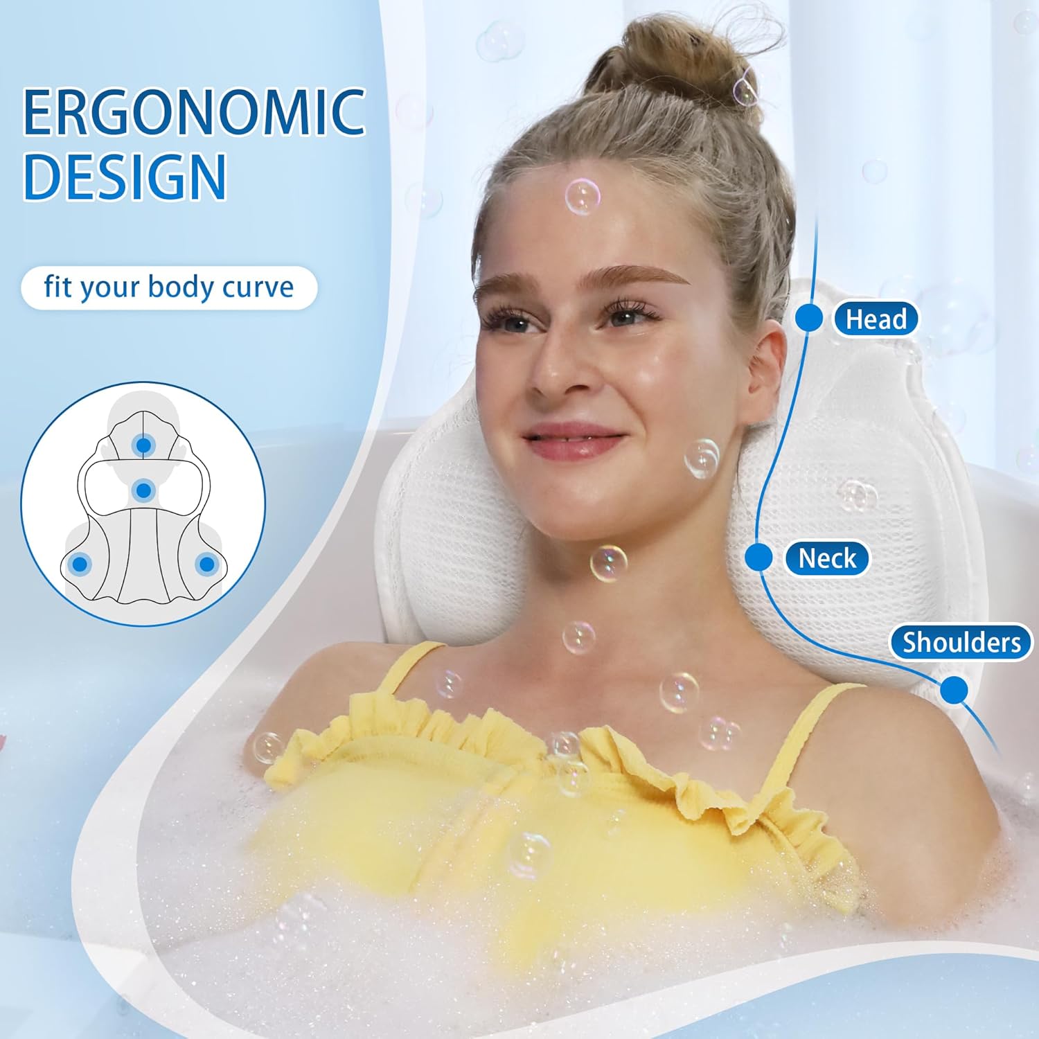 Bath Pillow for Tub, Luxury Bath Pillow Soft 4d Mesh, Bathtub Pillow for Soaking tub with 6 suctions Cups, Bath Tub Pillows for Head and Neck Support, for Relaxing Spa