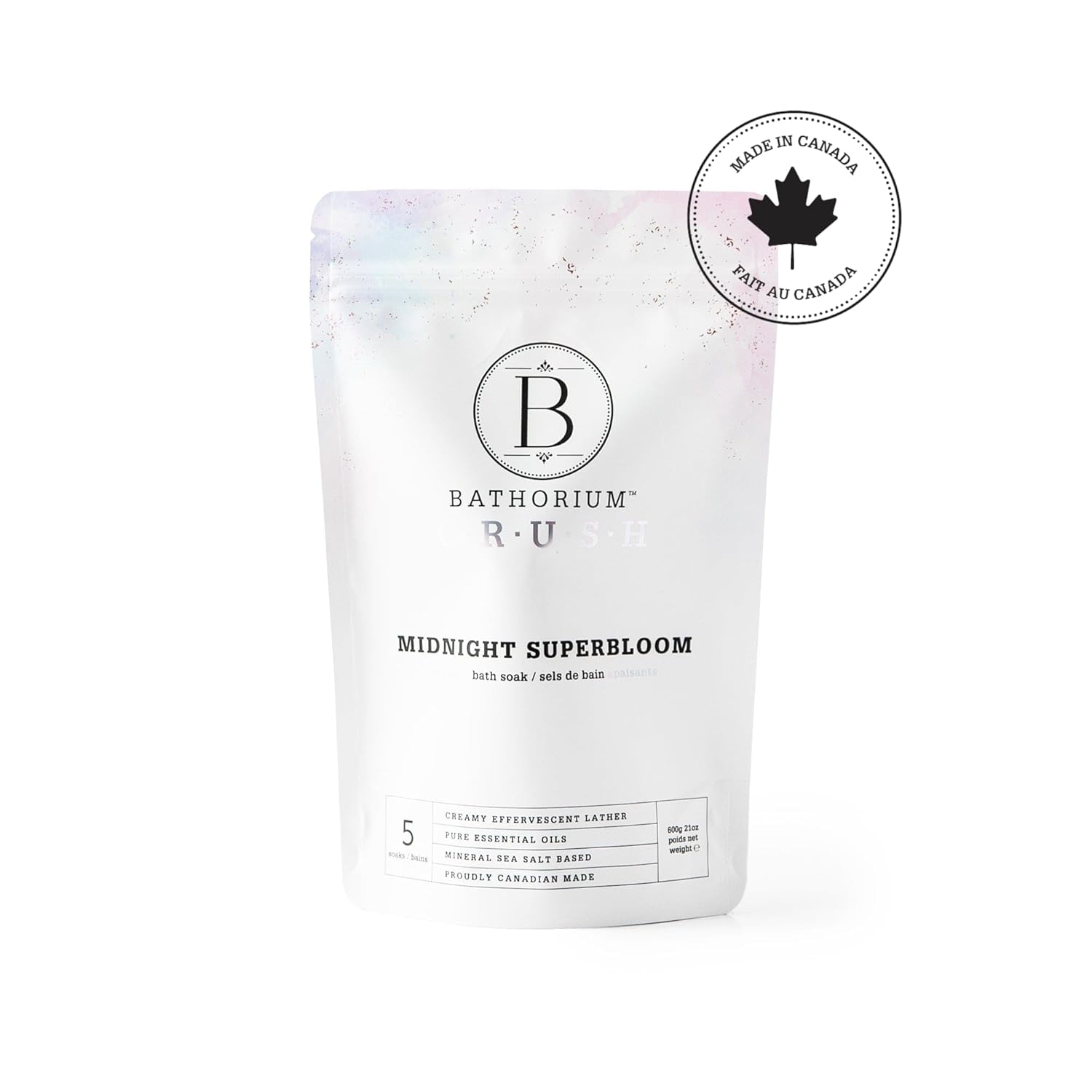 Bathorium Midnight Superbloom Crush, Wildflower Bath Soak, Lavender, Rose, Butterfly Pea Flower, Jasmine, Dead Sea Salt, 21 oz