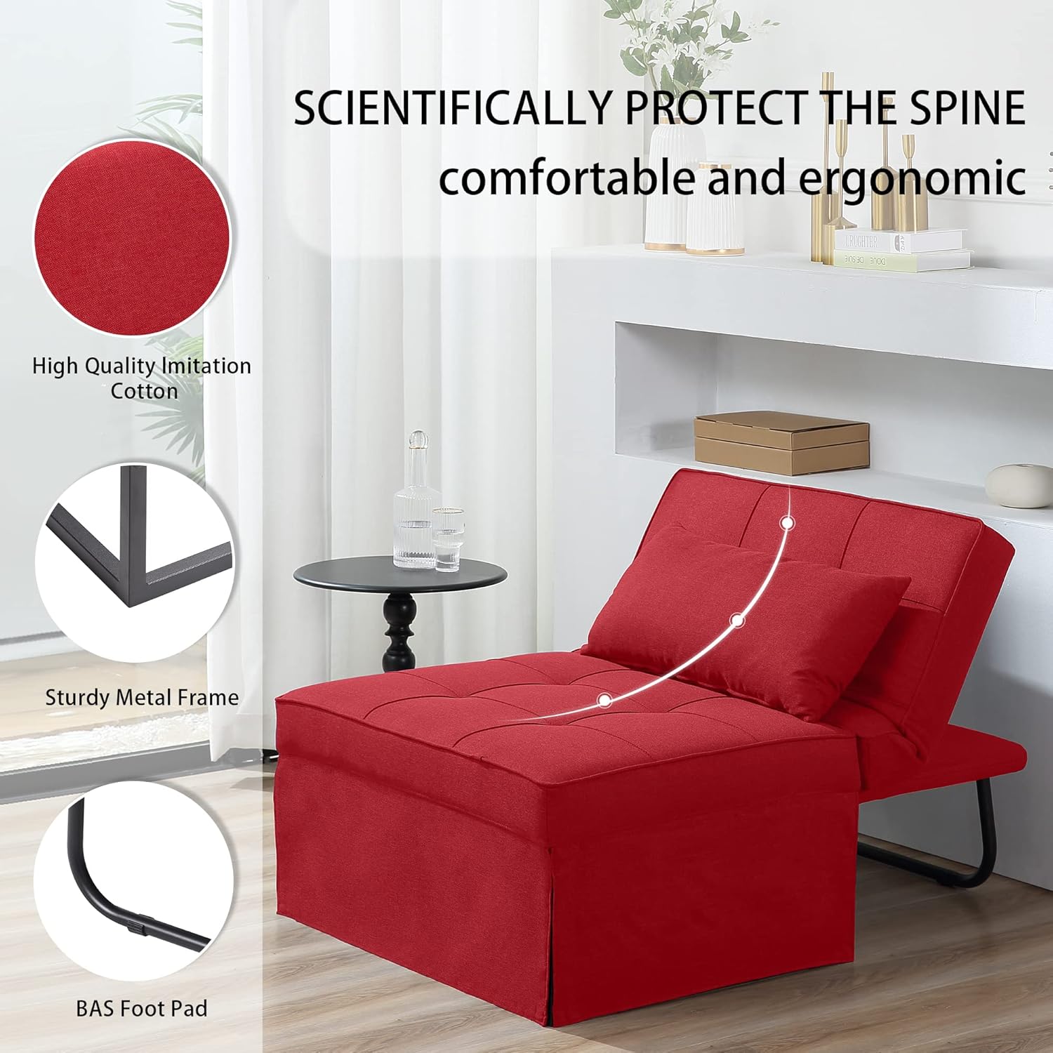 BIGSYY Sofa Bed, 4 in 1 Multi-Function Folding Ottoman Breathable Linen Couch Bed with Adjustable Backrest Modern Convertible Chair for Living Room Apartment Office, Red