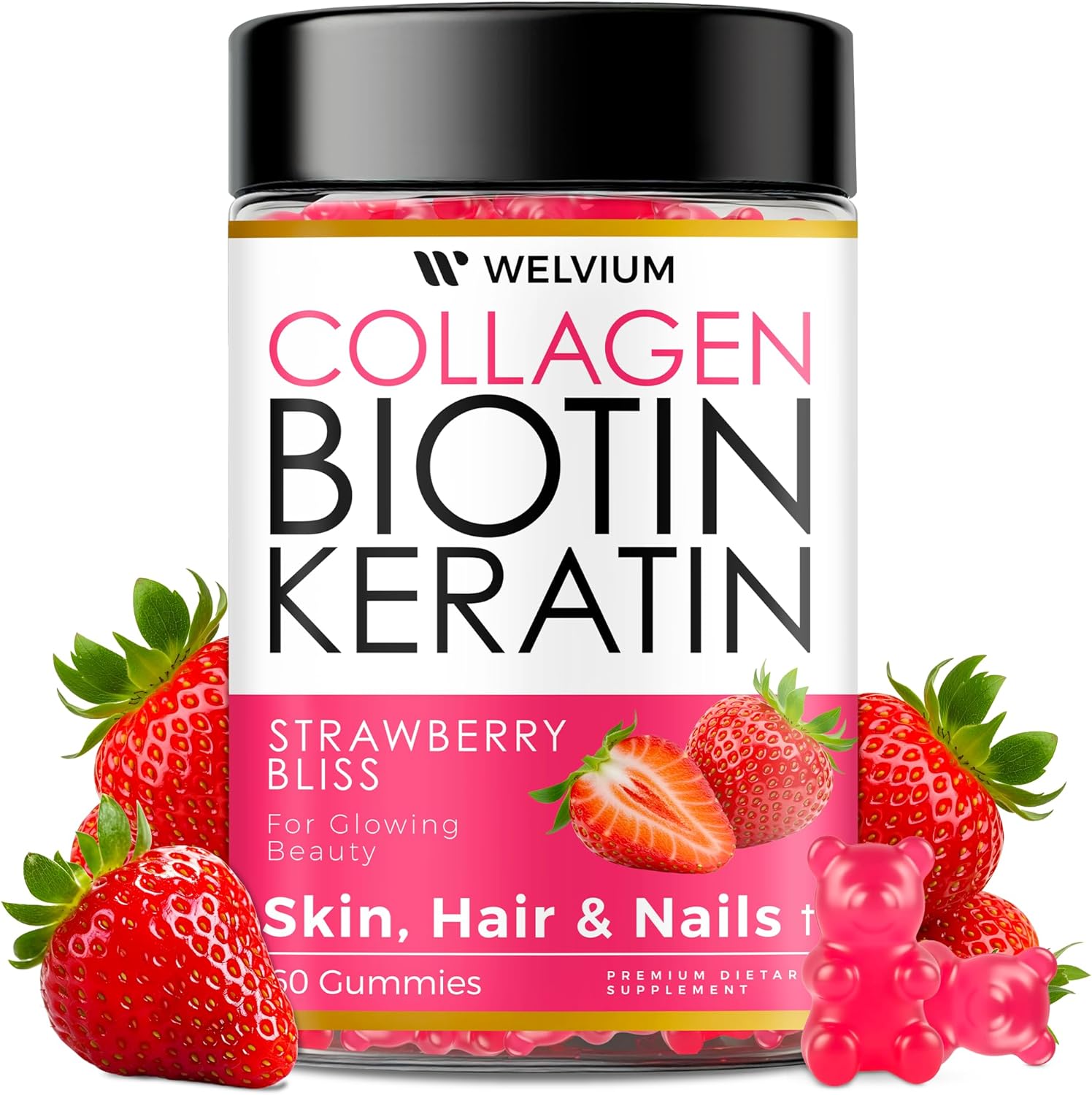500,000 mcg Keratin + Hyaluronic Acid for Hydration & Resilience: With 500,000 mcg of hydrolyzed keratin and hyaluronic acid, these gummies support skin barrier function, lock in moisture, and strengthen hair strands from the root. Whether you need keratin hair gummies, collagen and biotin supplements gummies, or biotin and collagen hair gummies, this all-in-one formula does it all