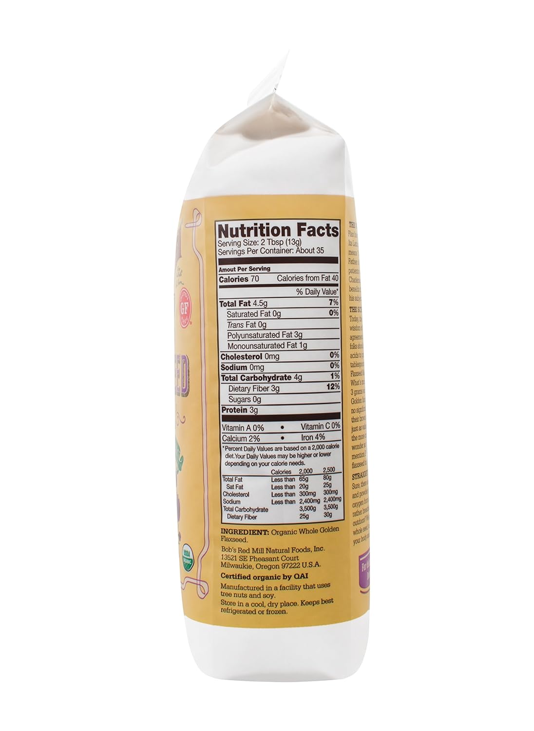Bob’s Red Mill Golden Flaxseed Meal, Organic, Gluten Free, Whole Ground, 16 Ounce