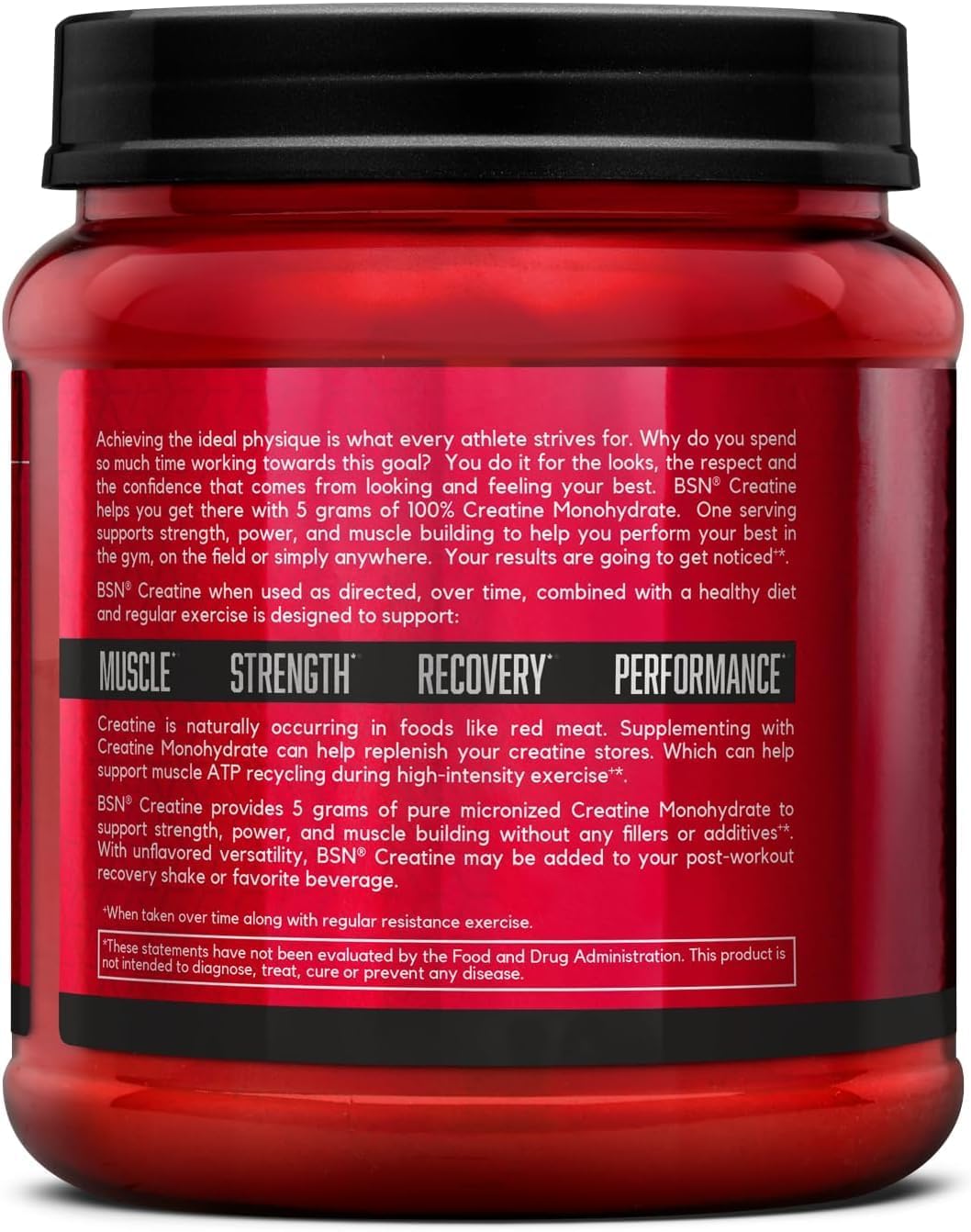 BSN Micronized Creatine Monohydrate Powder, Unflavored, 60 Servings, Supports Muscle Strength, 5g (5000mg) per Servings,Pure & Gluten Free, 5g (5000mg) per Servings