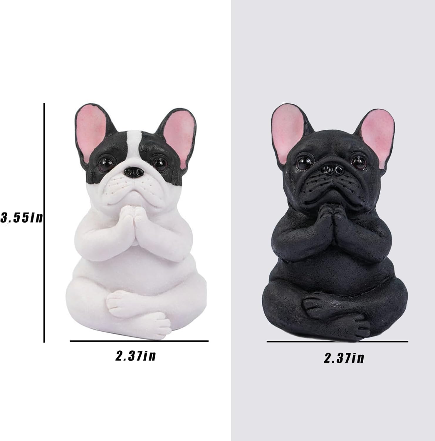 Buddha-Zen Dog Meditation Statue, French Bulldog Pug Statues Yoga Pose Decoration Polyresin Indoor Decor Figure for Home, Office or Car Accessories (Black Cross Dog)