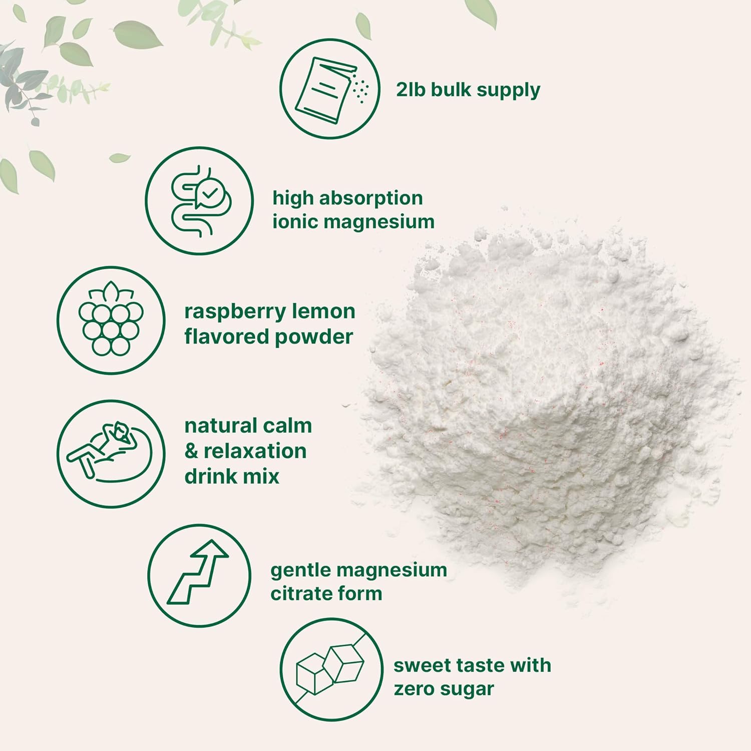 Calm Magnesium Powder, 2lbs | Magnesium Citrate Powder | Sweet Raspberry Lemon Flavored | Calm & Relaxation Mineral Support | Easily Absorbed | Non-GMO, Vegan, Sugar Free