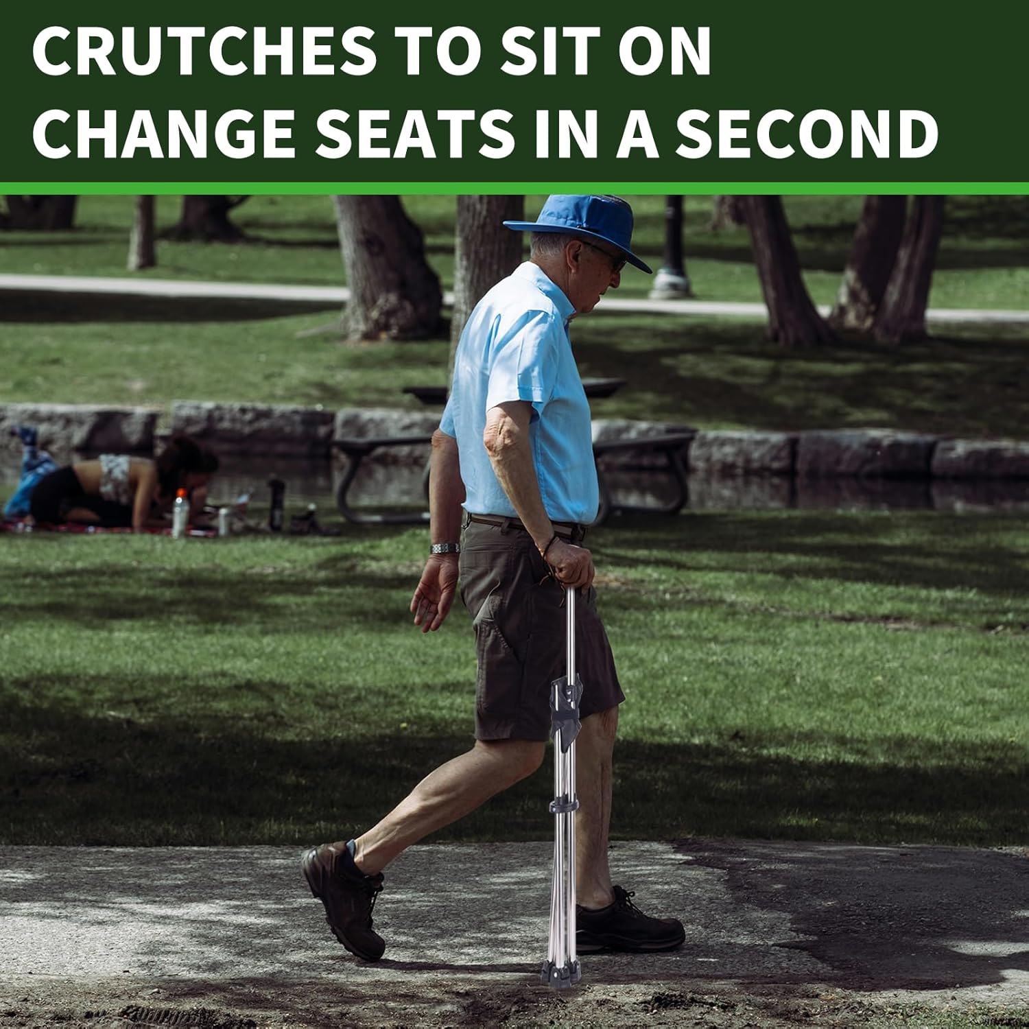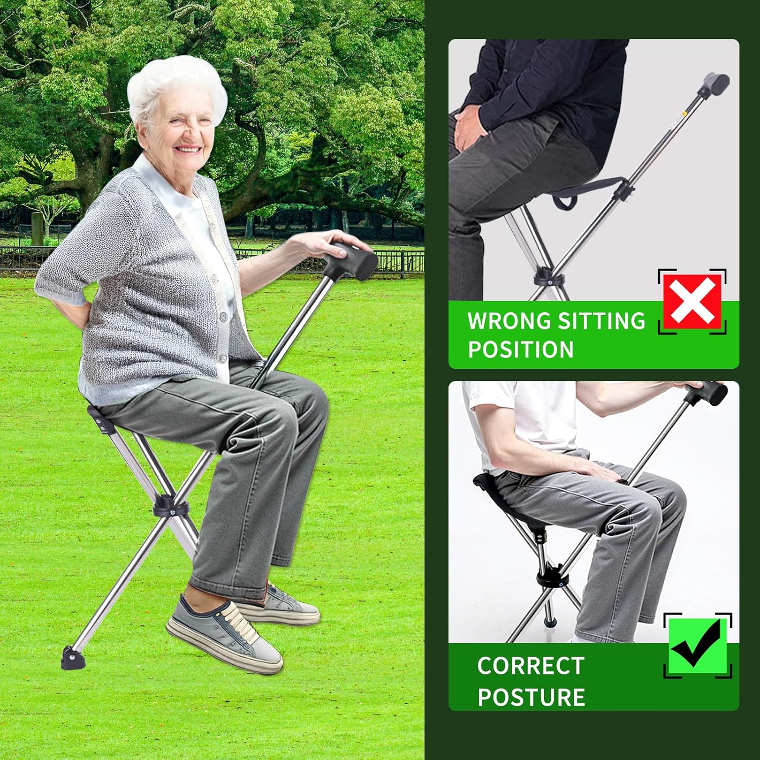 Versatile: This seatable crutch stool serves two purposes – as a walking aid and a portable seat.