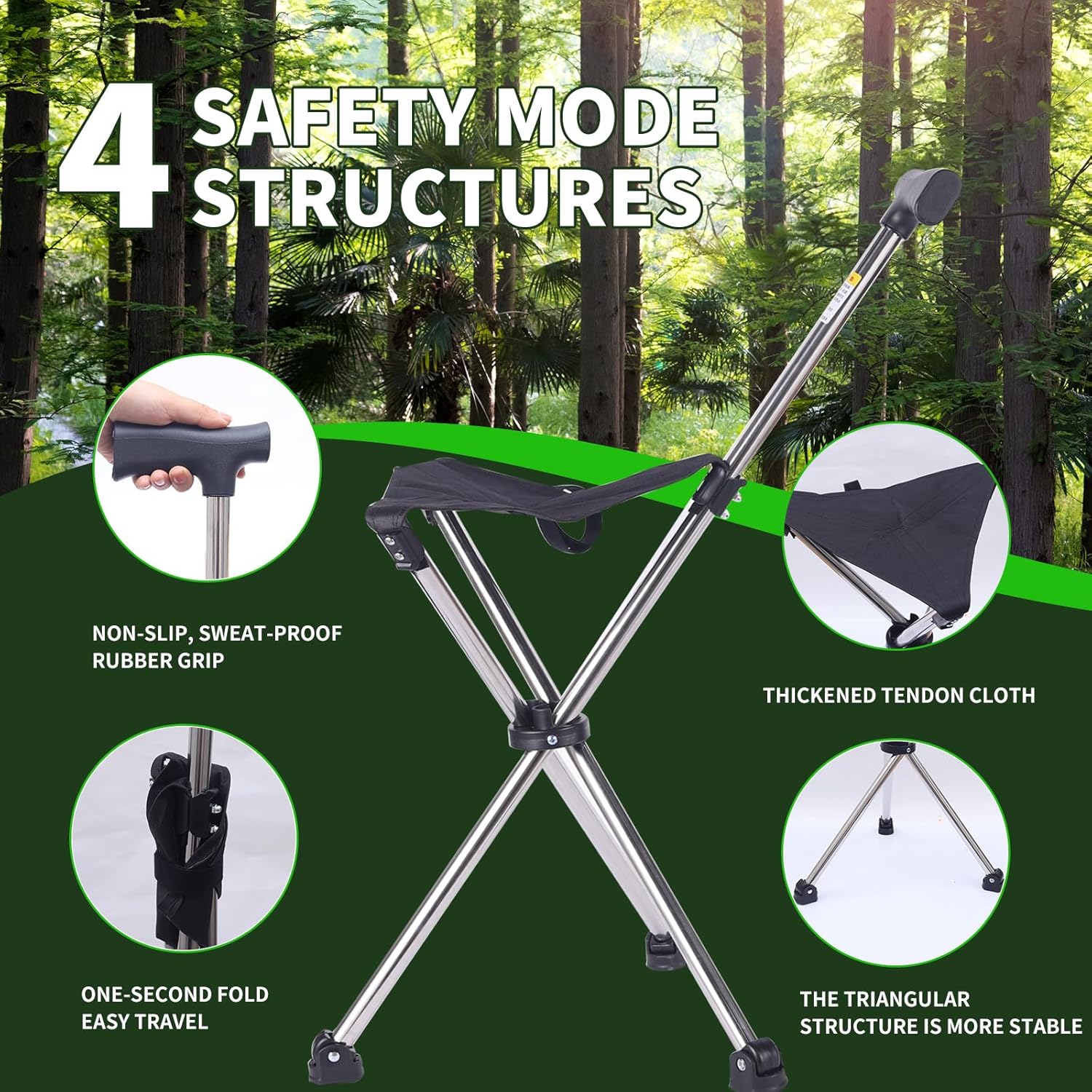 Stable Base: Triangular stance provides excellent stability when seated or using as a crutch.