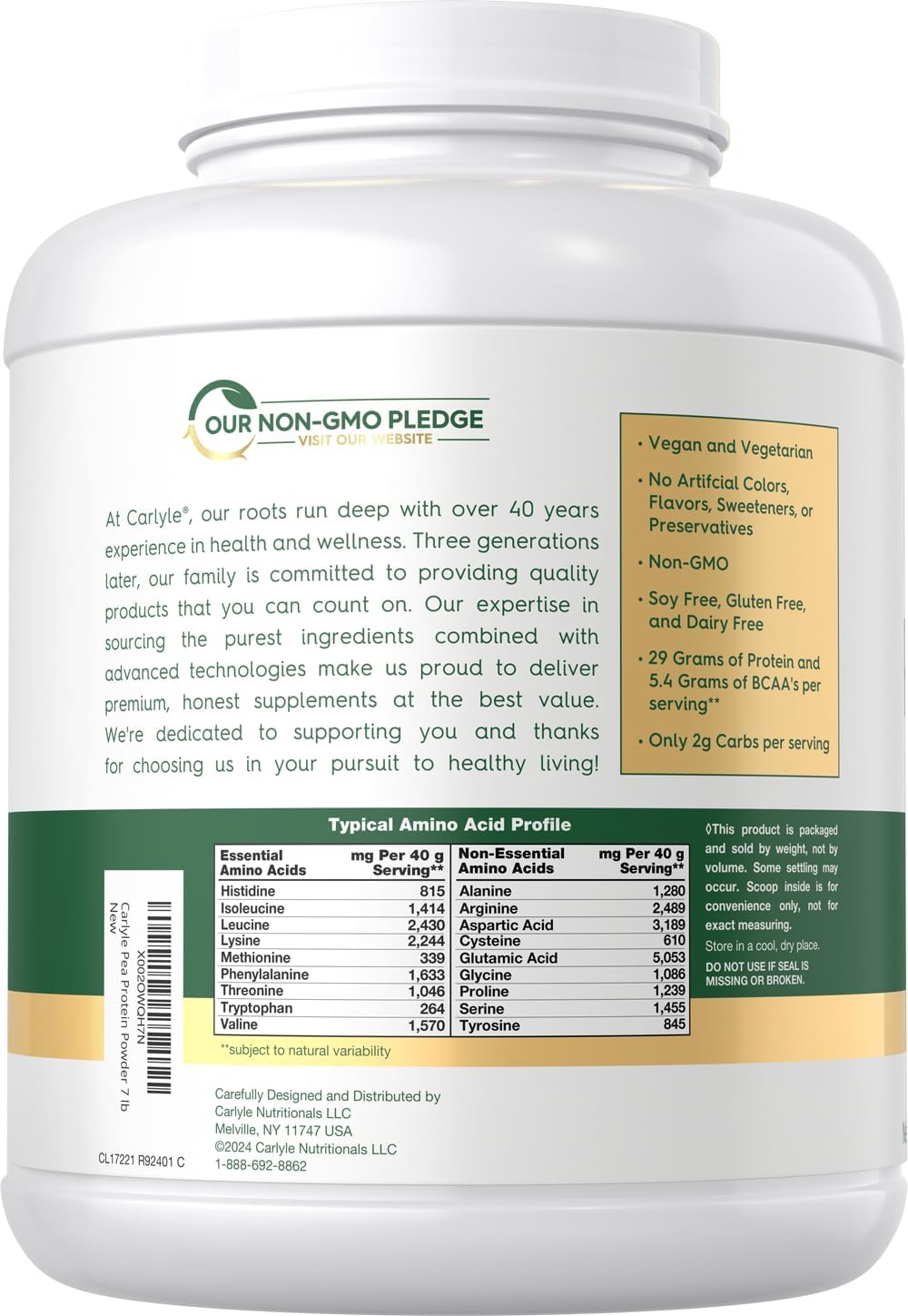 Carlyle Pea Protein Powder 7lb | Unflavored | 29G Protein | for Men and Women | Vegetarian, Non-GMO, Gluten, and Soy-Free