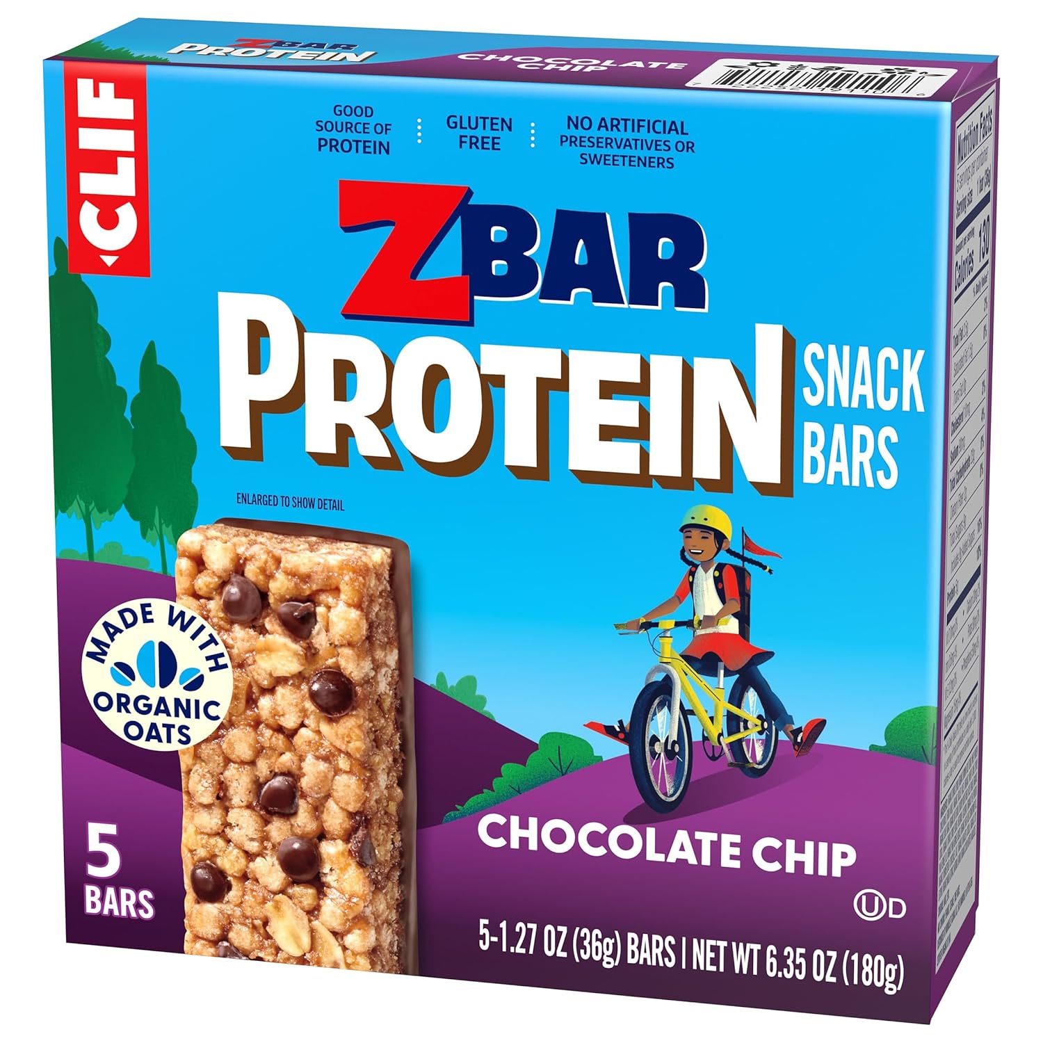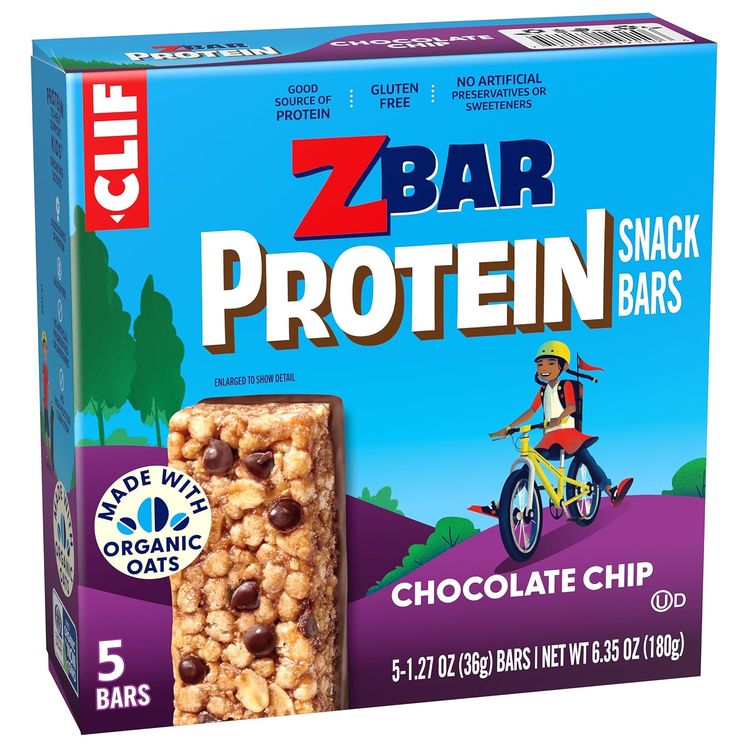 CLIF Kid Zbar Protein – Chocolate Chip – Crispy Whole Grain Snack Bars – Made with Organic Oats – Non-GMO – 5g Protein – 1.27 oz. (5 Pack)