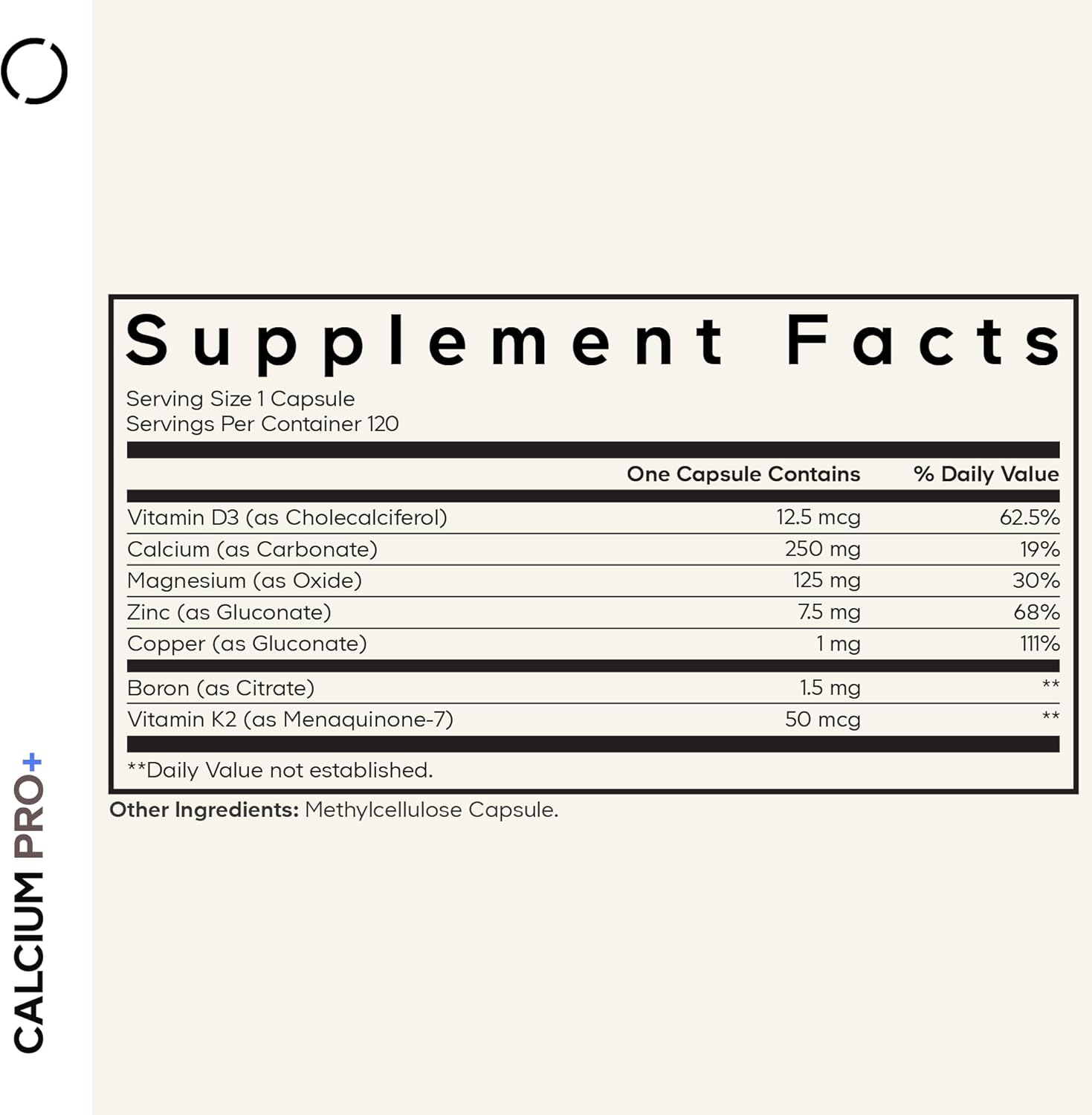Enriched with Essential Nutrients: This high calcium supplement includes Vitamin D3, magnesium, zinc, copper, Vitamin K2 (Menaquinone-7), and boron for a well-rounded blend of minerals and vitamins.