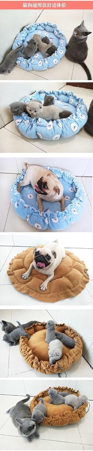 Creative Soft Warm Nest Dual-Use Pet Cushion Cats Dogs Adjustable Bed Drawstring Attached Multiple Styles(M,C)