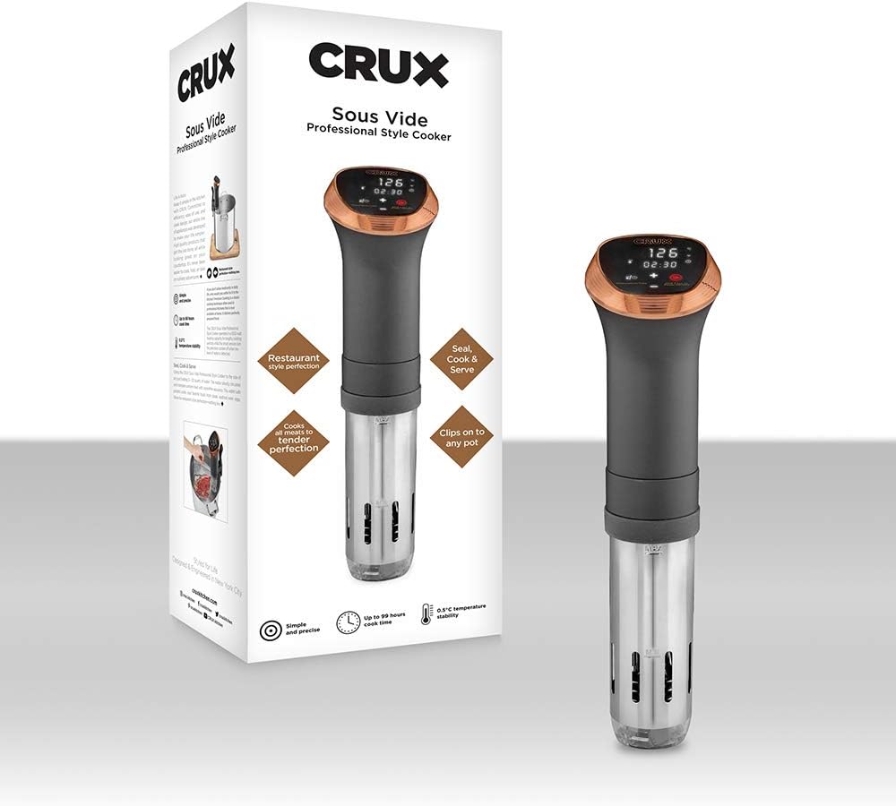 With the CRUX Sous Vide Professional style cooker you get just that, professional style cooking results with just the press of a button.