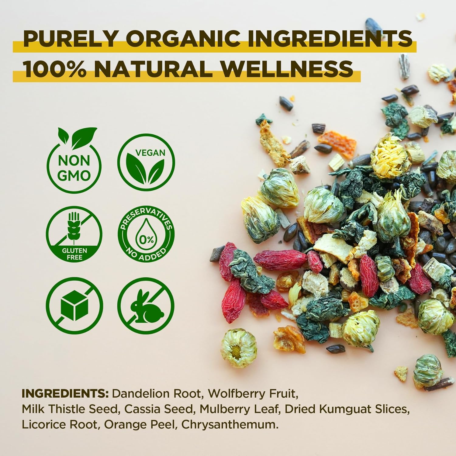 Natural Liver Support: With the milk thistle seed and dandelion root, our dandelion wolfberry tea promotes naturally liver support, helping to balance your body, promote kidney and liver health, so you feel refreshed and revitalized from within.