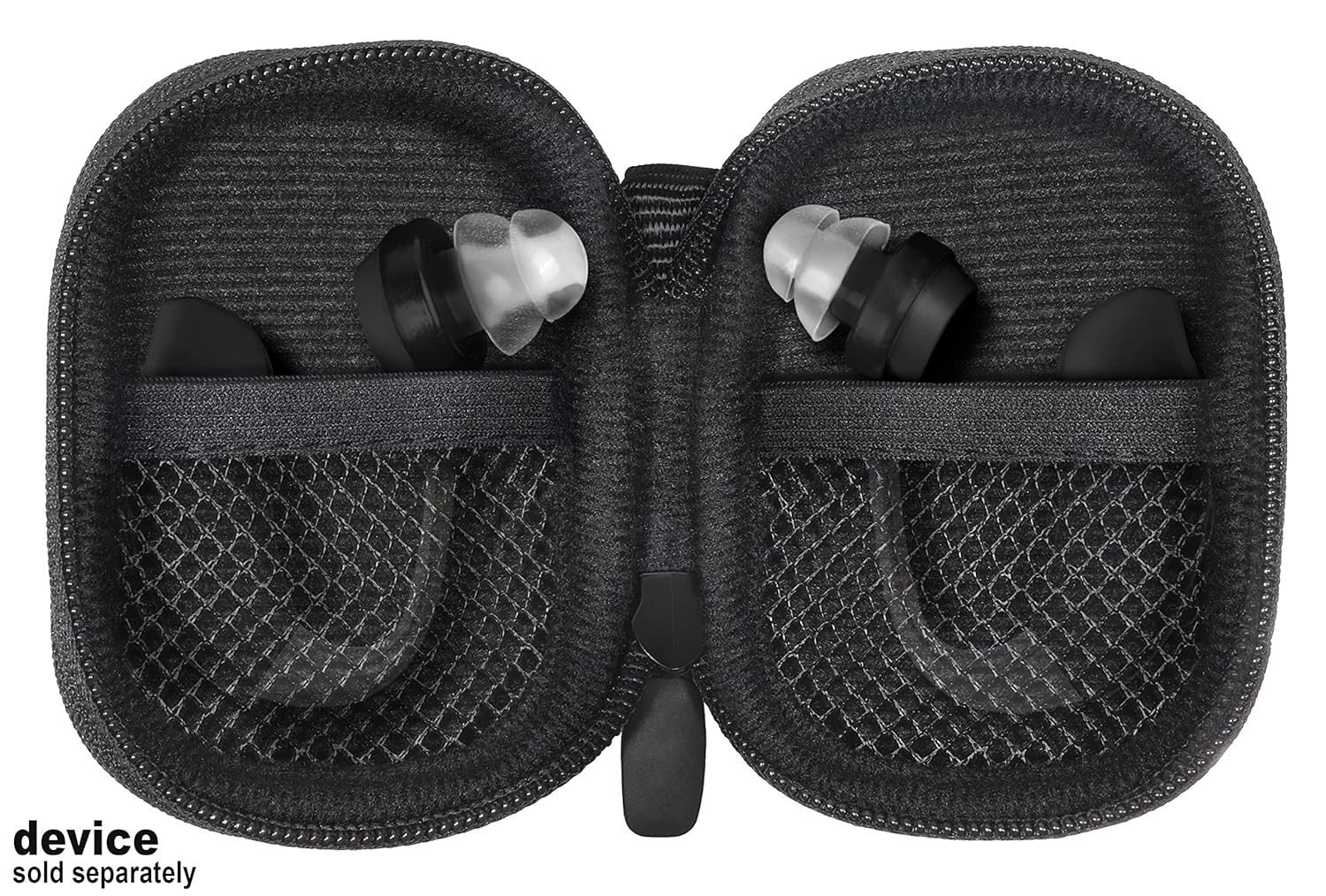 Designed Protective Case for Hearing Aid, Hearing Amplifier, Personal Sound Amplifier, Hearing Device, Listening Device, Strong Mini Case with Mesh pocket (Black)