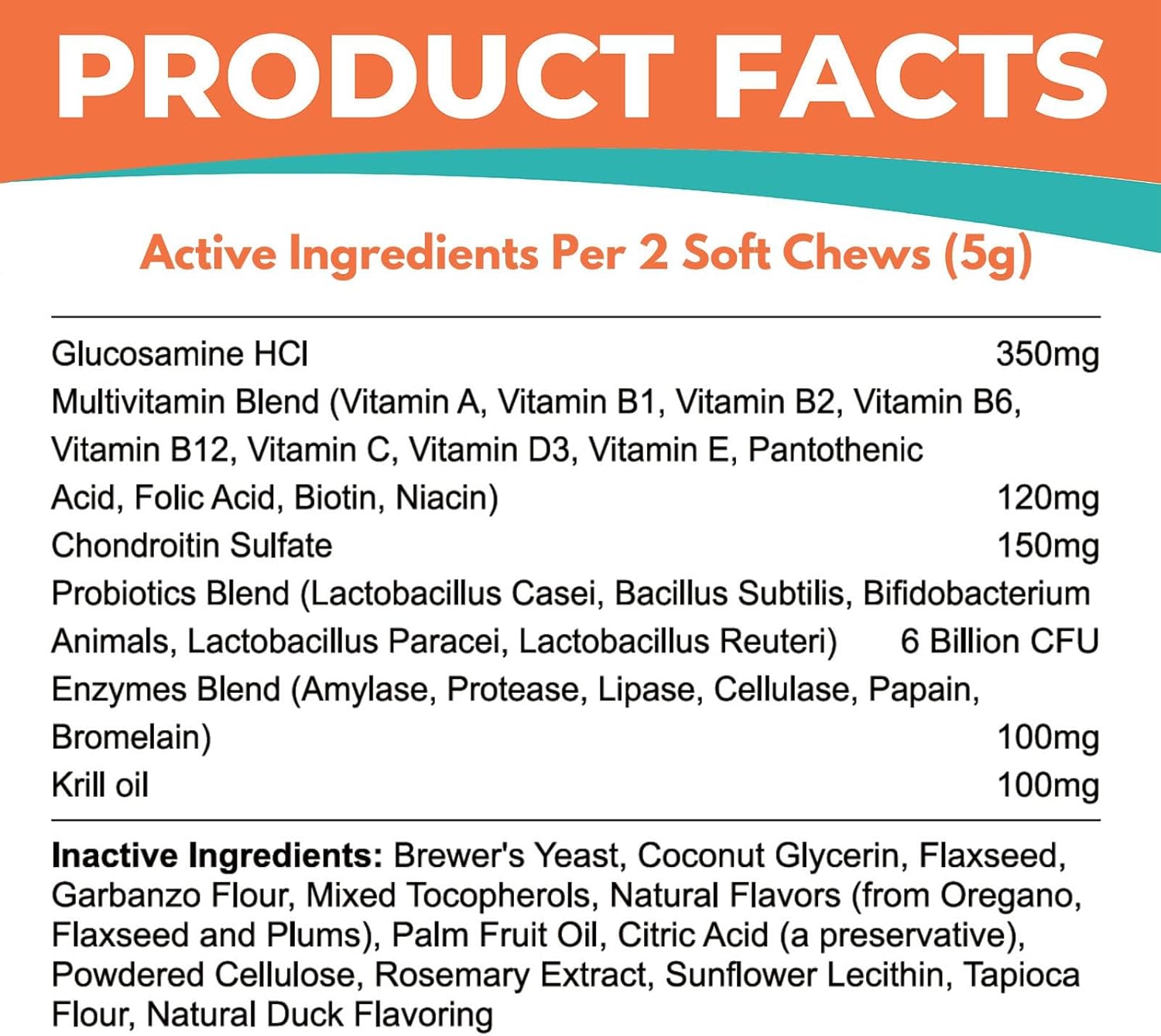 Complete Wellness Support – Advanced formula with glucosamine chondroitin, probiotics & vitamins to boost your dog’s joint mobility, digestive health, and immune function in one daily treat