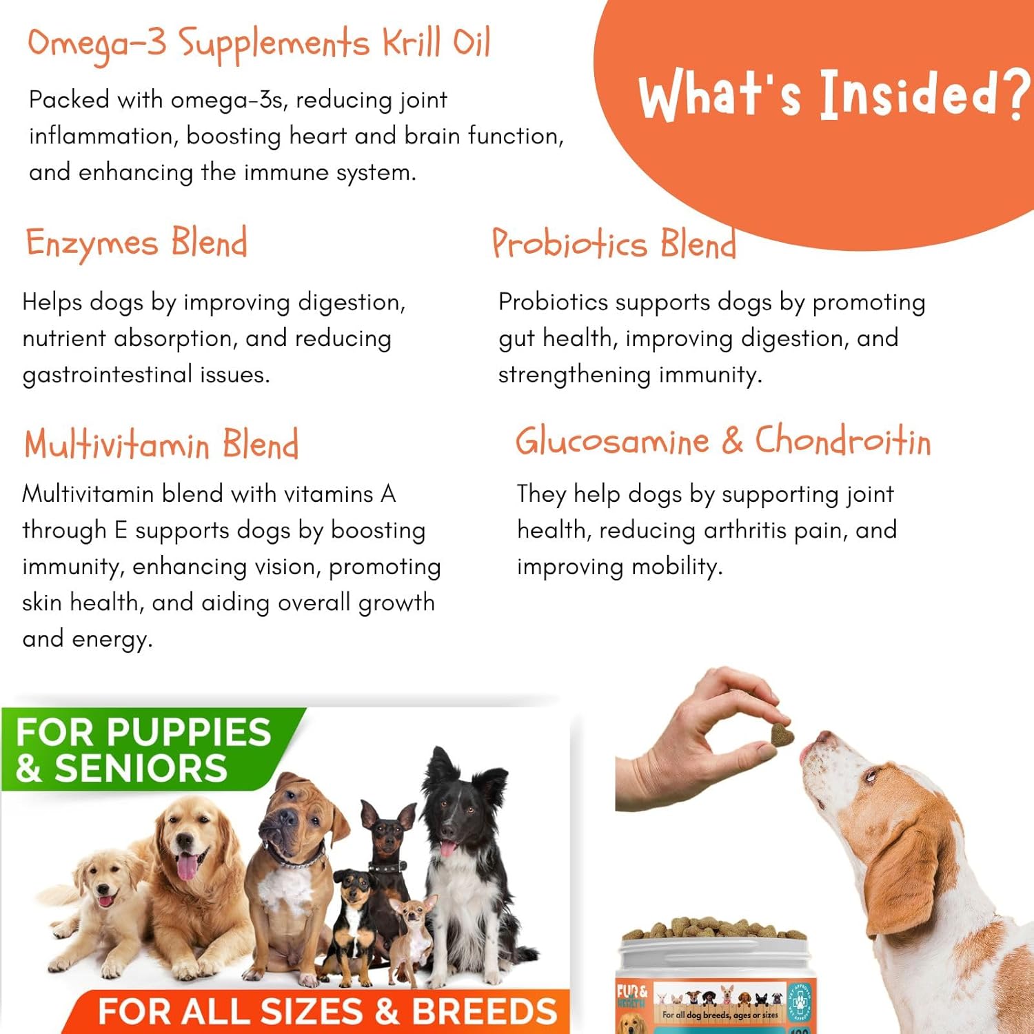 Joint & Mobility Care – Glucosamine blend with MSM and chondroitin supports healthy joints, reduces inflammation, and enhances mobility, helping your dog stay active and playful at any age