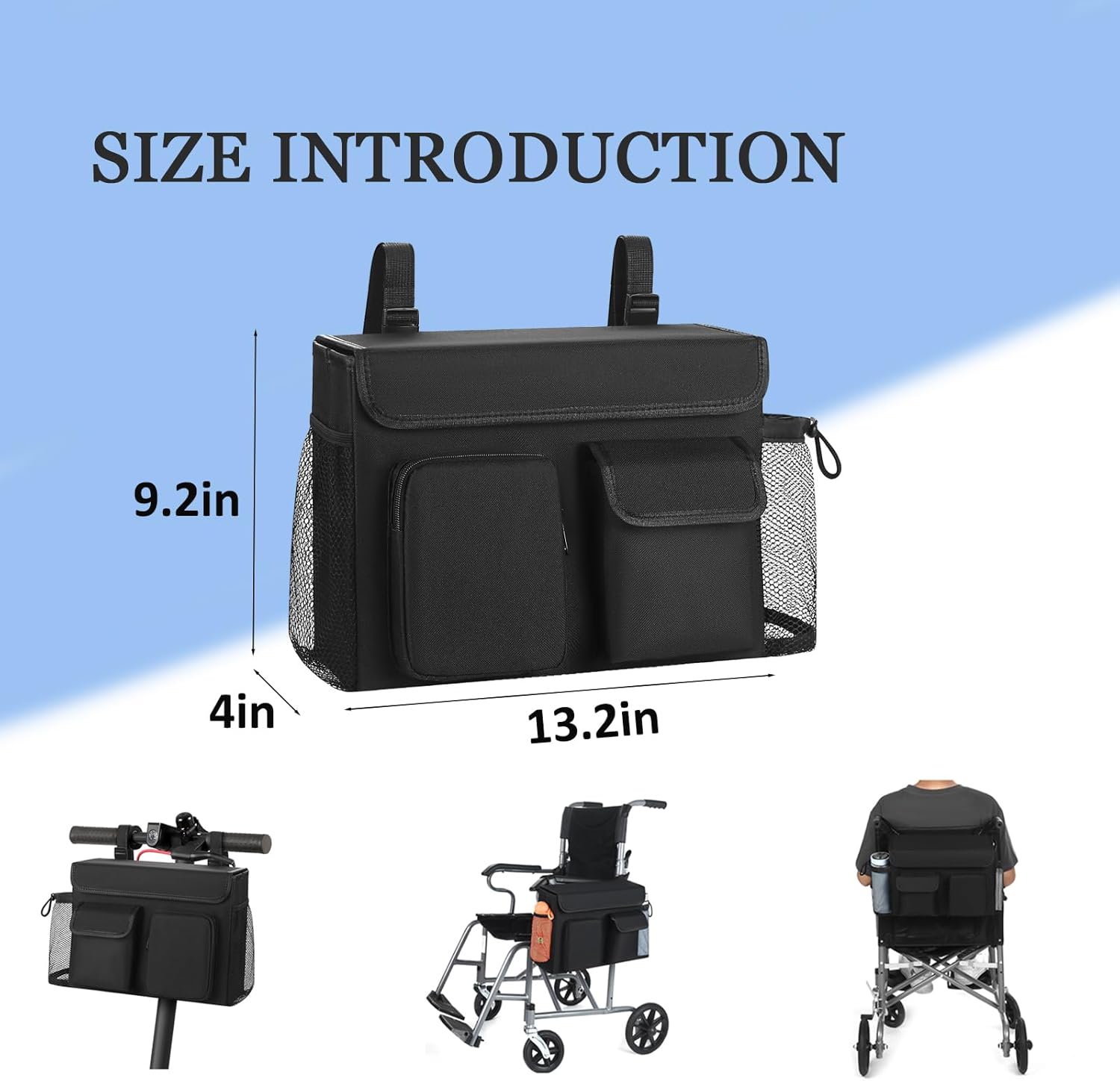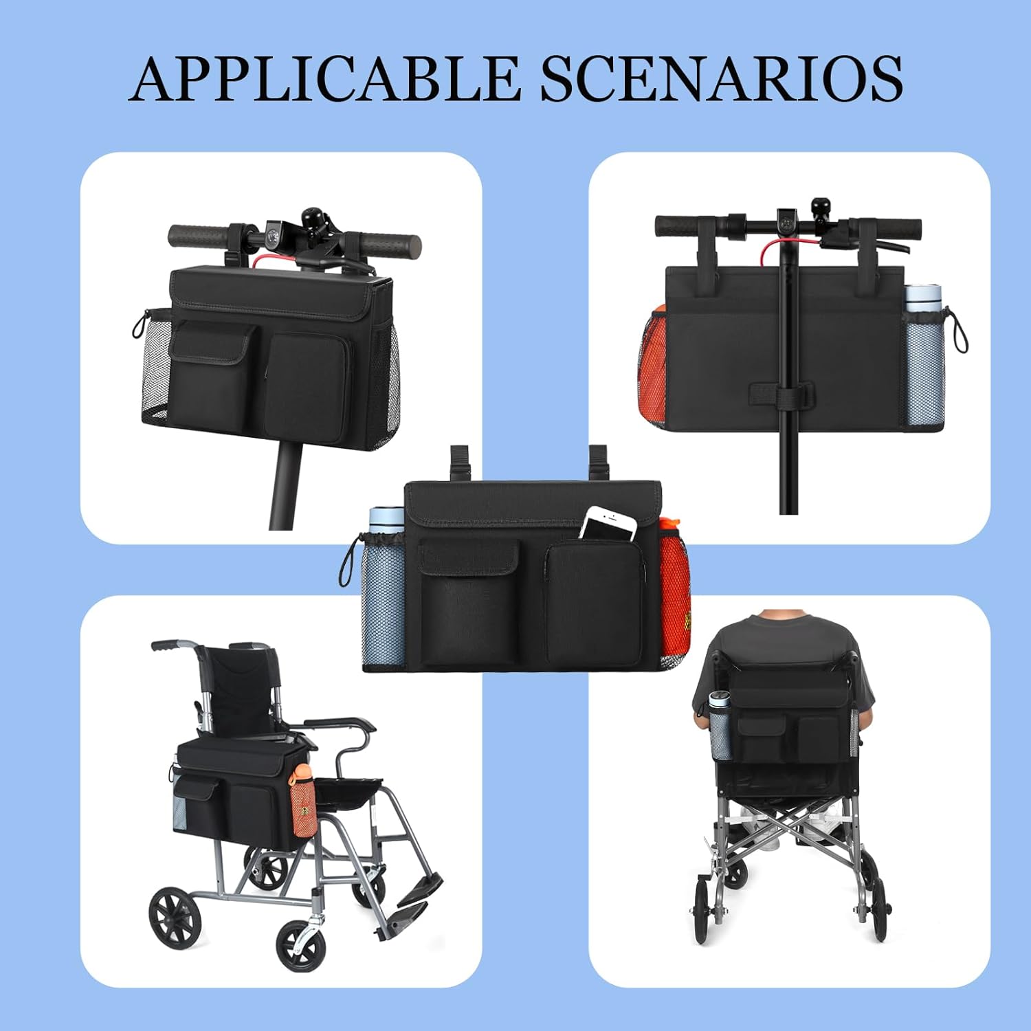 The scooter bag with vesatile pockets is perfect for scooter, but also suitable for wheelchair well.