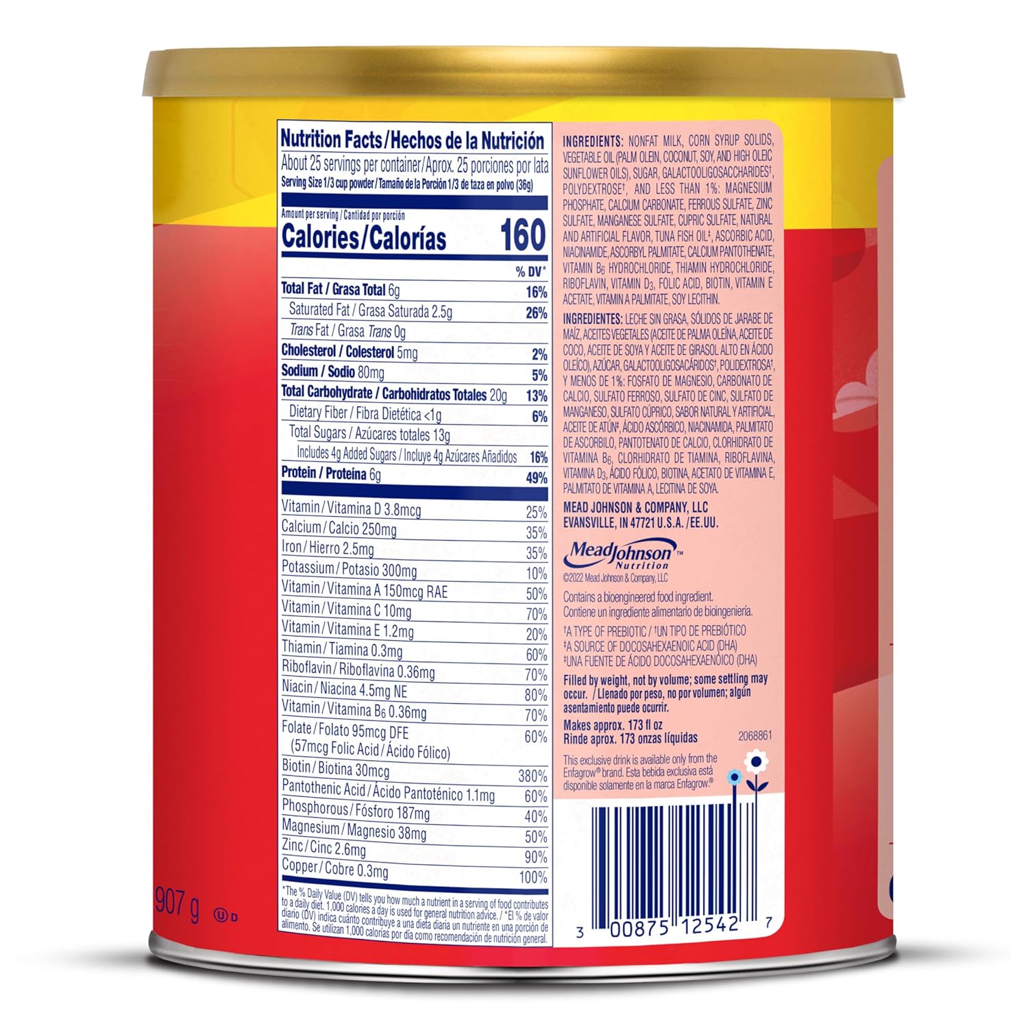 It has 22 vitamins and minerals, brain building DHA, prebiotics, basically a nutritional support system for your lil independent toddler