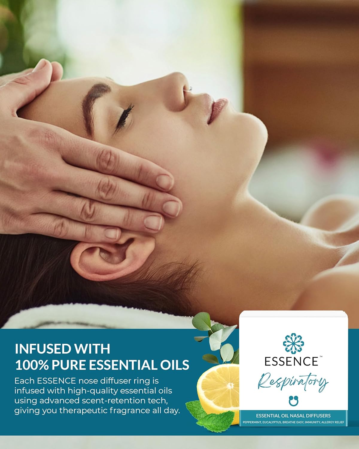 Essence Nasal Diffuser Respiratory Bundle – Essential Oil Silicone Nose Rings for Sinus Relief, Congestion & Seasonal Breathing Support – Wearable Aromatherapy for Cold & Allergy Symptoms