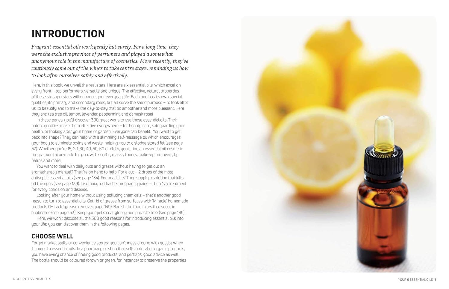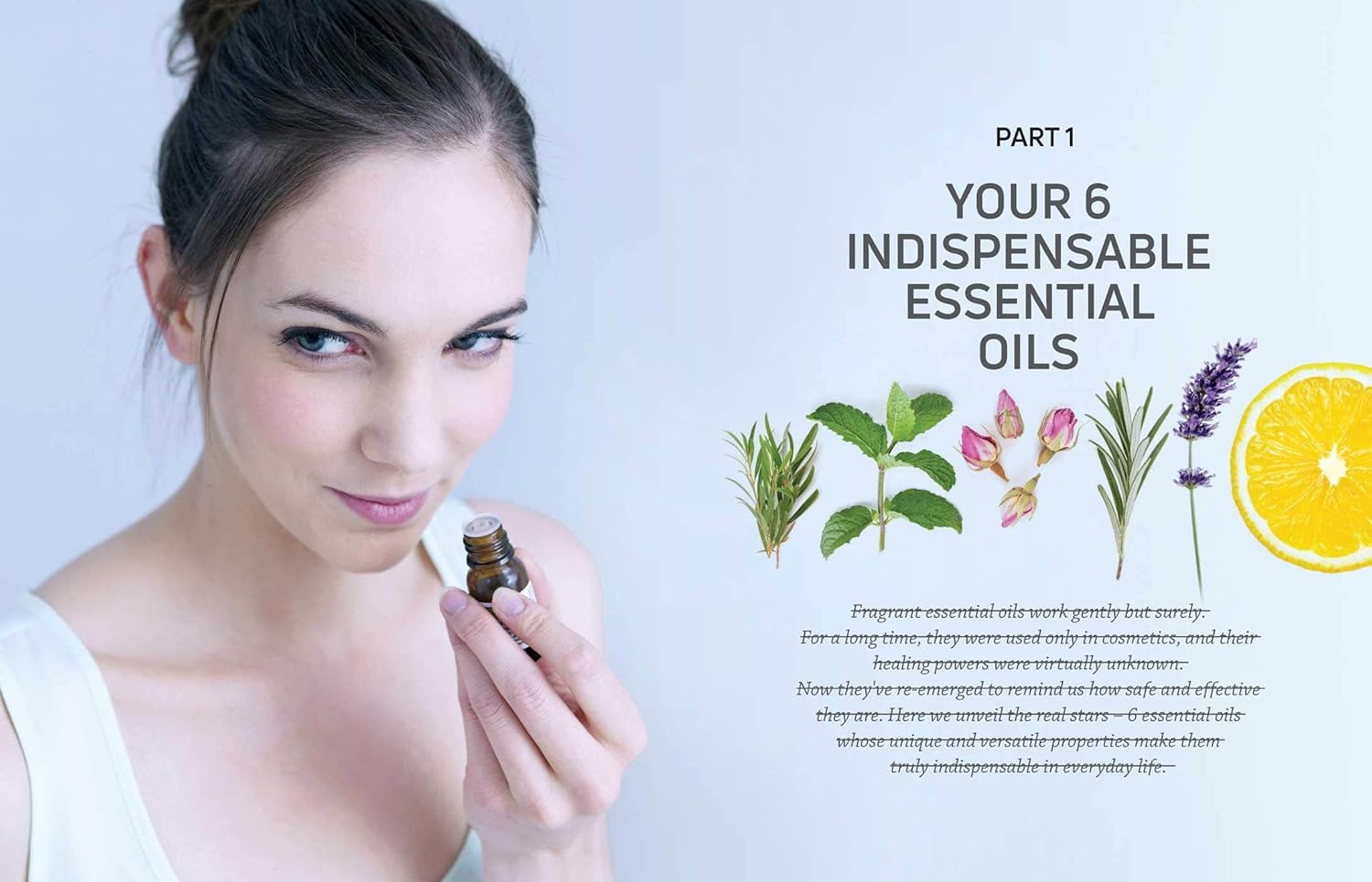 Everyday Essential Oils focuses on six indispensable essential oils and their multi-purpose uses and powers: tea tree, lemon, lavender, peppermint, rosemary cineole, and Damask rose.